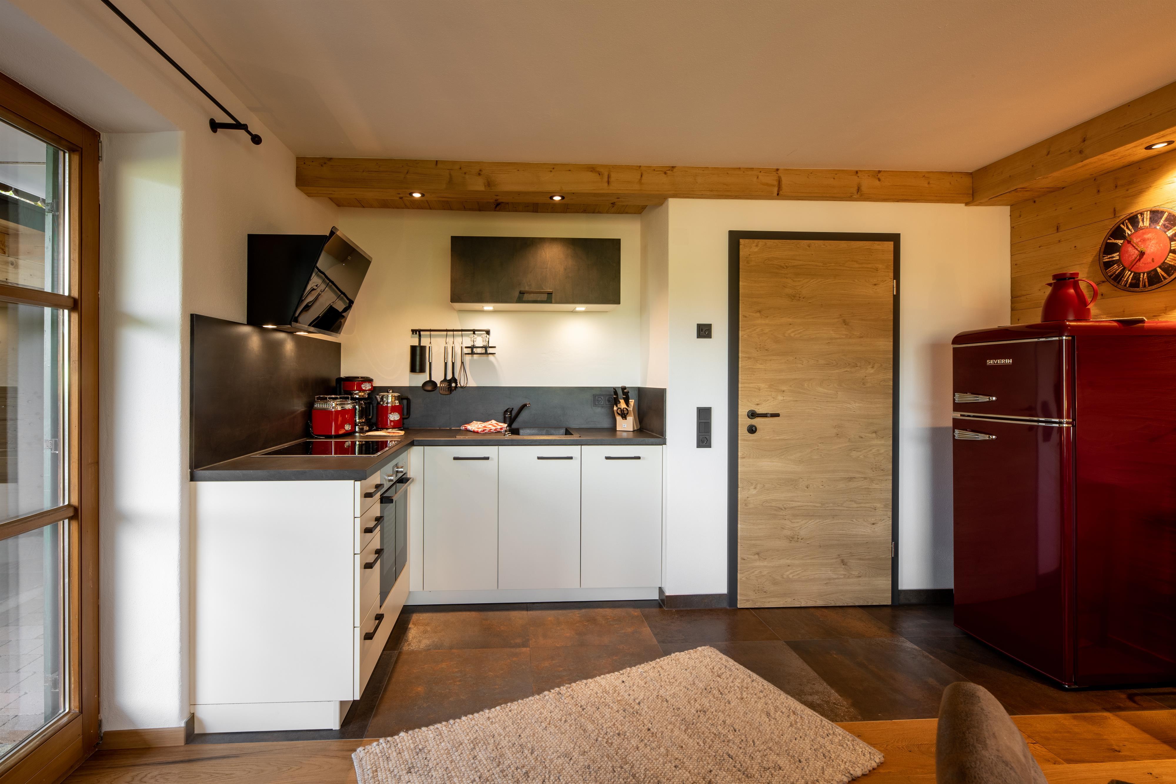 Küche, komplett ausgestattet (Spülmaschine, Backofen, Kaffeemaschine, Toaster, Wasserkocher...)