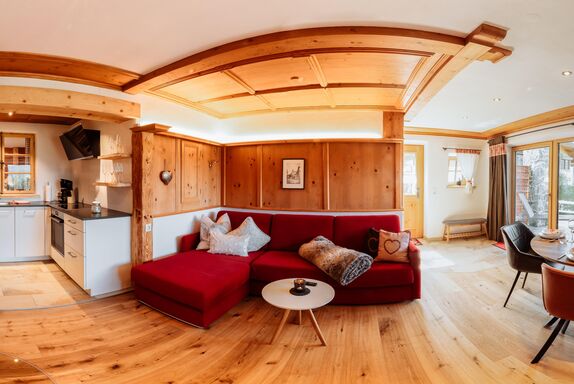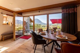 • Wohn-/Essbereich mit Panoramafenster Richtung Pfrontener Tal