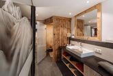 • Badezimmer mit Regendusche, WC, Föhn, Hand- und Duschtücher, Toilettenartikeln