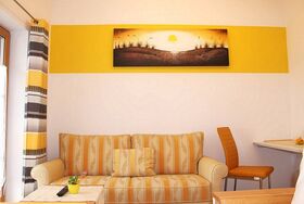 Die 29 m² große “Kuschelkammer” ist ein gemütliches, sonniges Appartement für bis zu 2 Personen. Diese ist hochwertig eingerichtet und verfügt über ein Bad sowie einer separaten Küchenzeile.