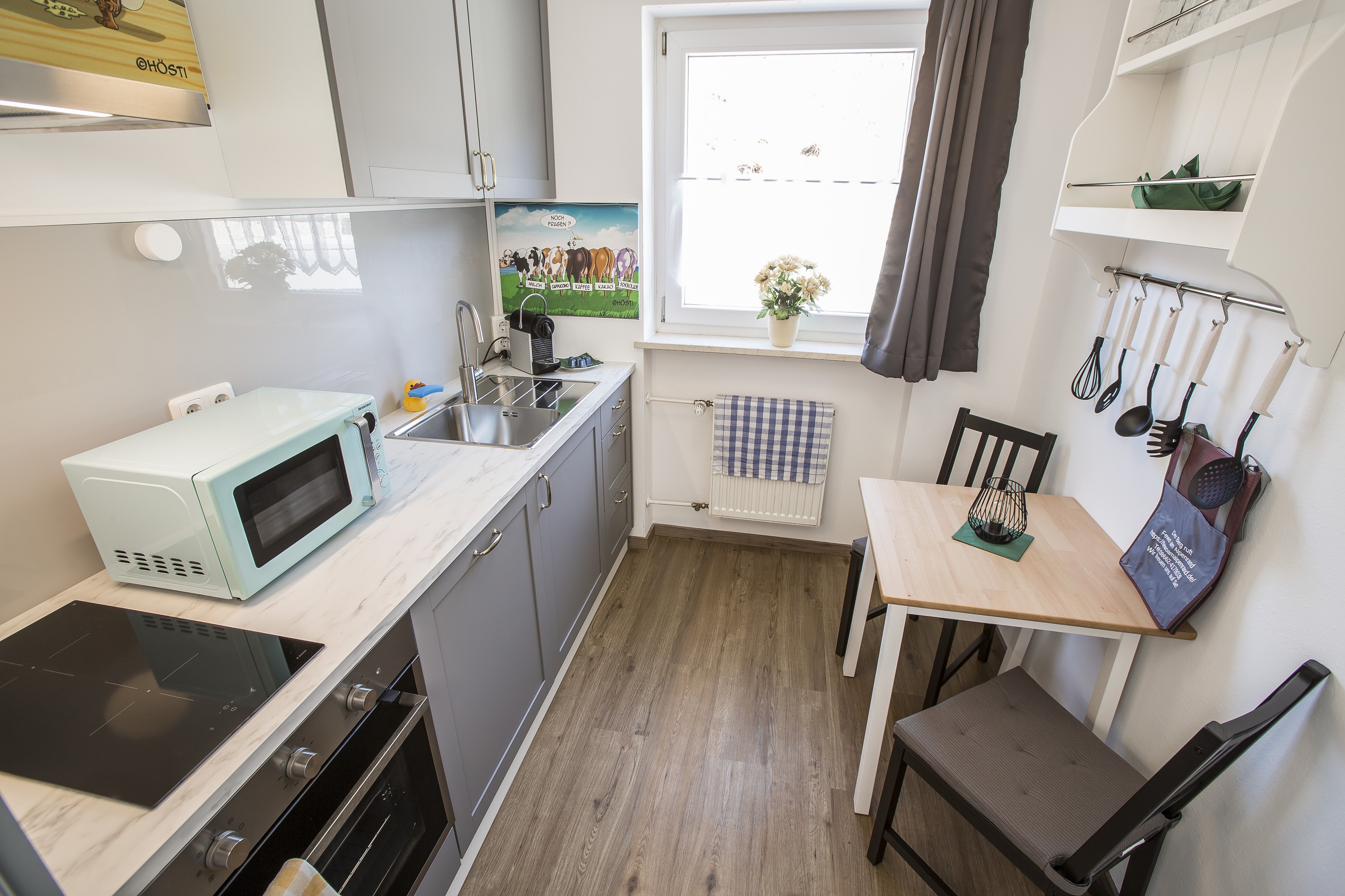 Das Objekt befindet sich im Hochparterre Erdgeschoss eines gepflegten Mehrparteienhauses in Siegsdorf. Die Ausstattung lässt keine Wünsche offen, wir haben dieses Appartement im Jahre 2022 kernsaniert und dabei besonderen Wert auf ein Wohlfühlklima gelegt, denn Urlaub ist die schönste Zeit des Jahres. Bei uns erwartet Sie Hotel-Charakter, ohne die Nachteile eines Hotels. Das Bad verfügt über eine Regenwalddusche und Handtuchheizung. Die Küche ist voll ausgestattet und hält u. a. Kaffeemaschine, Mikrowelle und Toaster bereit. Zur weiteren Ausstattung gehört ein großer 55-Zoll-Smart-TV, ein kabelloser Staubsauger von Dyson, kostenfreies Highspeed-WLAN und eine Alexa, über welche Sie u. a. Nachrichten und Radio hören können. Sollten Sie weitere Geräte, wie CD-Radio benötigen lassen Sie es uns bitte wissen. Die Fenster sind 3fach verglast und mit elektrischen Rollläden versehen. Vom Balkon aus haben Sie einen freien Blick auf eine große Wiese und die Berge. Hier können Sie sich erholen und Kraft tanken. Auf Wunsch bieten wir einen Kinderhochstuhl an, die Ferienwohnung bietet auch Platz für Ihr mitgebrachtes Babybett. Im Haus wohnen nur ruhige Leute, die die Ruhe dieser besonderen Lage zu schätzen wissen. Der Hauptraum besitzt eine Größe von 15m².