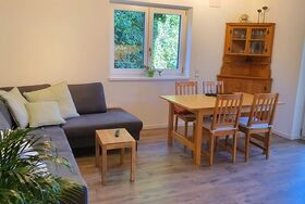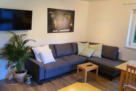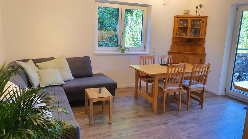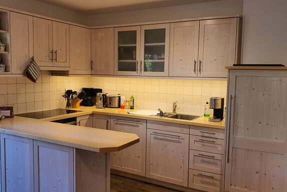 In der Wohnküche können dank des ausziehbaren Sofas bis zu zwei zusätzliche Schlafplätze bereitgestellt werden. Die Küche selber ist umfangreich und hochwertig mit vielen Elektrogeräten, Geschirr und Kochutensilien ausgestattet - und falls Sie mal nicht selber kochen wollen: Direkt gegenüber ist der Gasthof Alpenhof mit sehr empfehlenswerter Küche, der Ihnen gerne auf Anfrage auch morgens in seinen Räumen mit einem phänomenalen Ausblick auf den wilden Kaiser ein Frühstück anbietet.