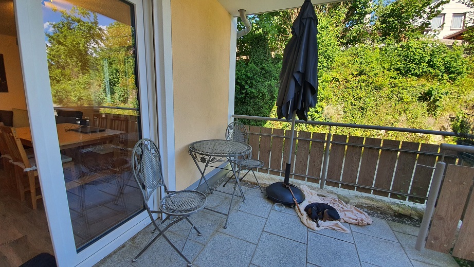 Wir können Ihnen einen Stellplatz zur Verfügung stellen, der sich direkt vor der Wohnung befindet (ebenerdiger Zugang über die Terrasse).