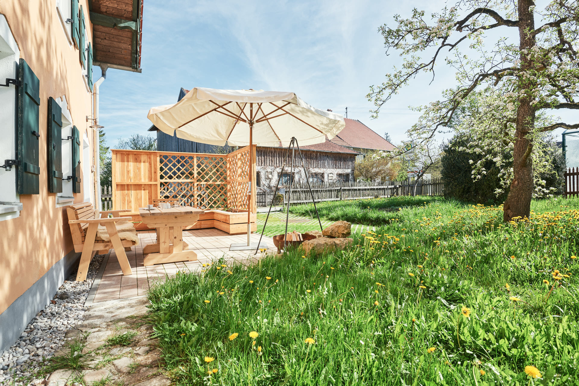 Sehr gemütliche Ferienwohnung in einem, nach baubiologischen Grundsätzen, renovierten alten Bauernhof im Ortsteil Birkland/Hofen. Die 64m² große Wohnung verfügt über einen separaten Eingang, wurde mit viel Fingerspitzengefühl und Geschmack 2023 sehr individuell ausgestattet und bietet Platz für 2-3 Personen. Im Weiler Hofen gibt es nur 8 Anwesen, 4 davon sind traditionelle Milchwirtschaftsbetriebe. Kein Verkehrslärm stört die Ruhe. Als Einkaufsmöglichkeit steht der kleine Supermarkt mit eigener Metzgerei, Bäckerei und Gärtnerei im 6 km entfernten Ort Herzogsägmühle zur Verfügung. Größere Geschäfte finden sie in Peiting oder Schongau. Im nahegelegenen Restaurant Zauberhütte können Sie bei einem Stück Kuchen den traumhaften Bergblick genießen.