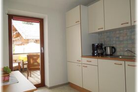 Küche komplett eingerichtet mit Geschirr, Kühlschrank, Kaffeemaschine, 4-Platten-Herd mit Backrohr, Mikrowelle, SAT-TV mit Radio. Bettwäsche und Handtücher vorhanden. Terrasse mit Gartengarnitur und Beleuchtung. Brötchenservice oder Frühstück gegen Aufpreis vom Buffet möglich.