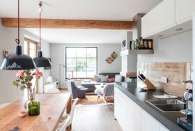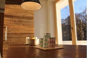 Die luxuriöse Ausstattung umfasst neben der modernen Küche mit Induktionskochfeld, Mikrowelle/Backofen, Geschirrspüler und Nespresso Maschine einen großen, erweiterbaren Esstisch sowie Fernseher in allen Wohn- und Schlafräumen. In der gesamten Wohnung bietet eine Fußbodenheizung wohlige Wärme. Bei der Einrichtung mit hochwertigen Materialien wie Altholz und Feinsteinzeug wurde der typisch ländliche Stil mit modernen Akzenten kombiniert.