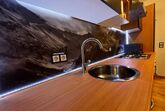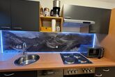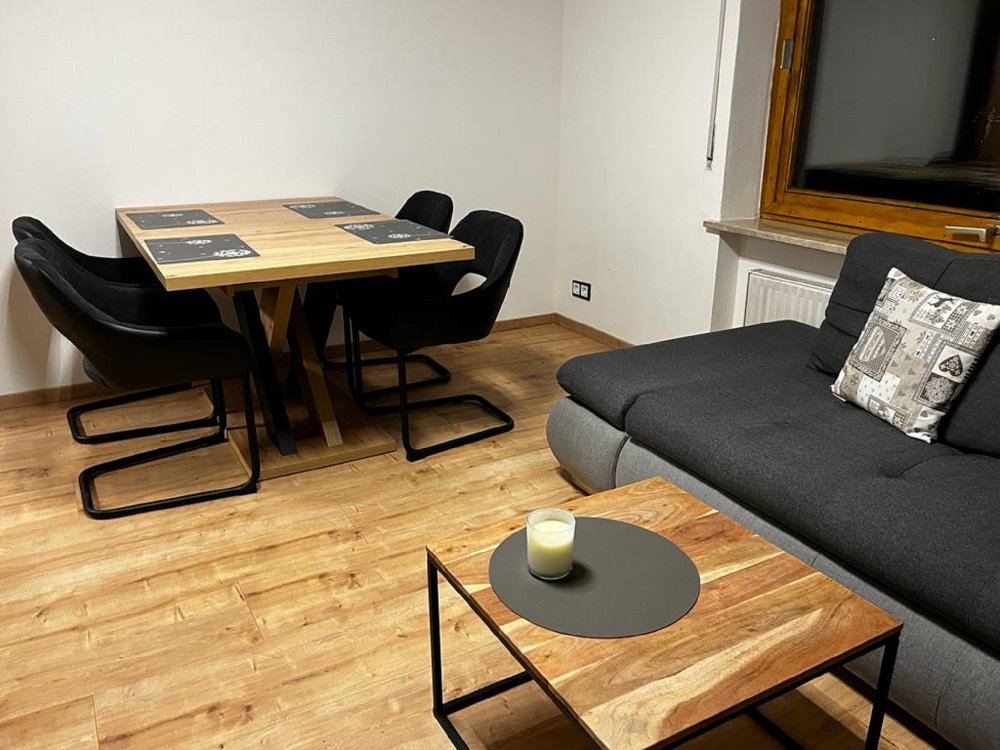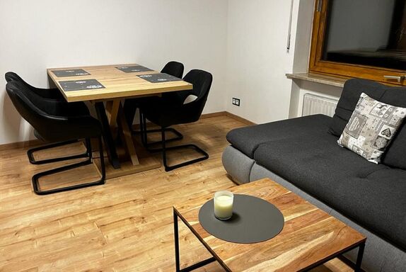 Die 50 qm große, gemütliche Ferienwohnung Bergblick mit Balkon ist hochwertig eingerichtet und komfortabel ausgestattet: offener Wohn-Essbereich mit Fernseher mit Kabelanschluss, Schlafsofa für 2 Personen, modern eingerichtete Küche in einem extra Raum beinhaltet neben der Kaffeemaschine auch eine Mikrowelle, Kühlschrank, Backofen und eine Spülmaschine.