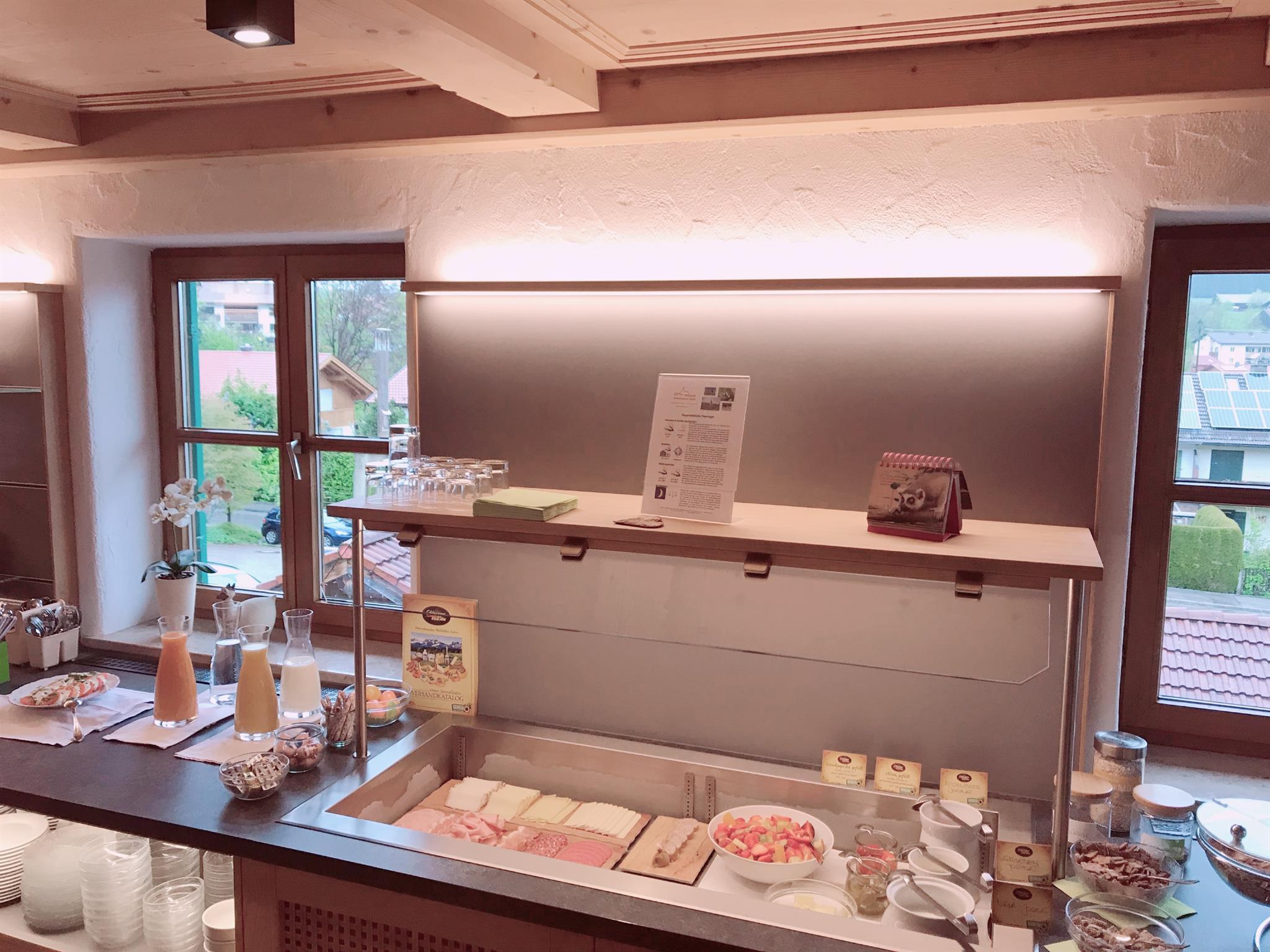 Die Gäste in den Fewos erhalten jeden morgen frische Semmeln an die Türe, spontane Teilnahme am Frühstücksbuffet ist jederzeit zubuchbar (gegen Gebühr).