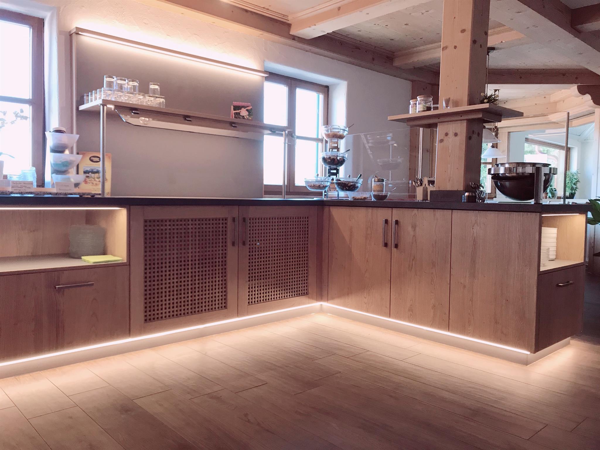 Die Gäste in den Fewos erhalten jeden morgen frische Semmeln an die Türe, spontane Teilnahme am Frühstücksbuffet ist jederzeit zubuchbar (gegen Gebühr).