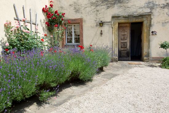Ganz Idyllisch liegt das Anwesen auf einer Flussinsel inmitten einer Wiesenlandschaft im Itzgrund zwischen Bamberg, Coburg, Bad Staffelstein und Seßlach. Die Brücke verbindet die Landkreise Coburg und Haßberge. Die romantische Schlossanlage ist im Familienbesitz seit 1859. Die Gäste wohnen im Schloss oder in den Fachwerkgebäuden des ehemaligen Mühlengebäudes an der Itz. Großzügige gepflegte Außenanlagen, Rosengarten im Innenhof, Kinderspiel-und Bolzplatz im Park, Angeln im eigenen Fischwasser.