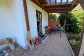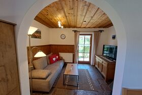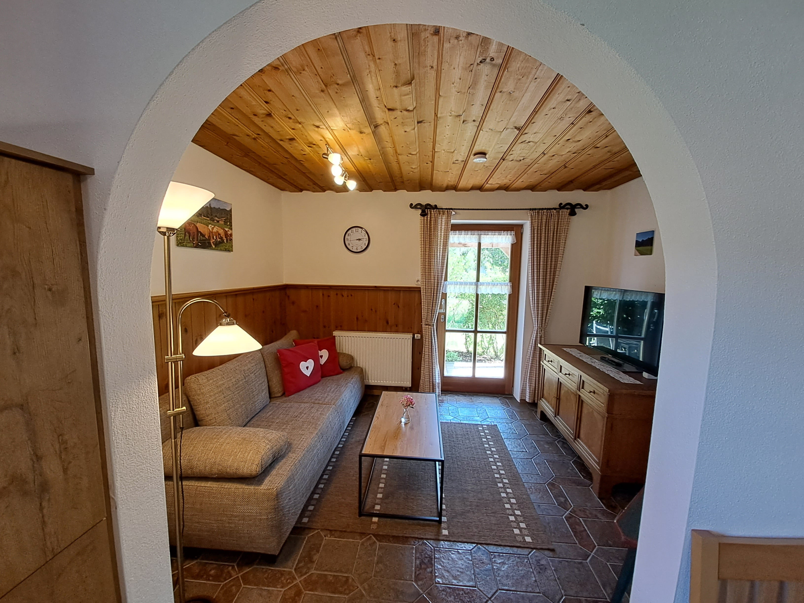 • Wohnzimmer mit Terrassenausgang zum überdachten Freisitz