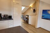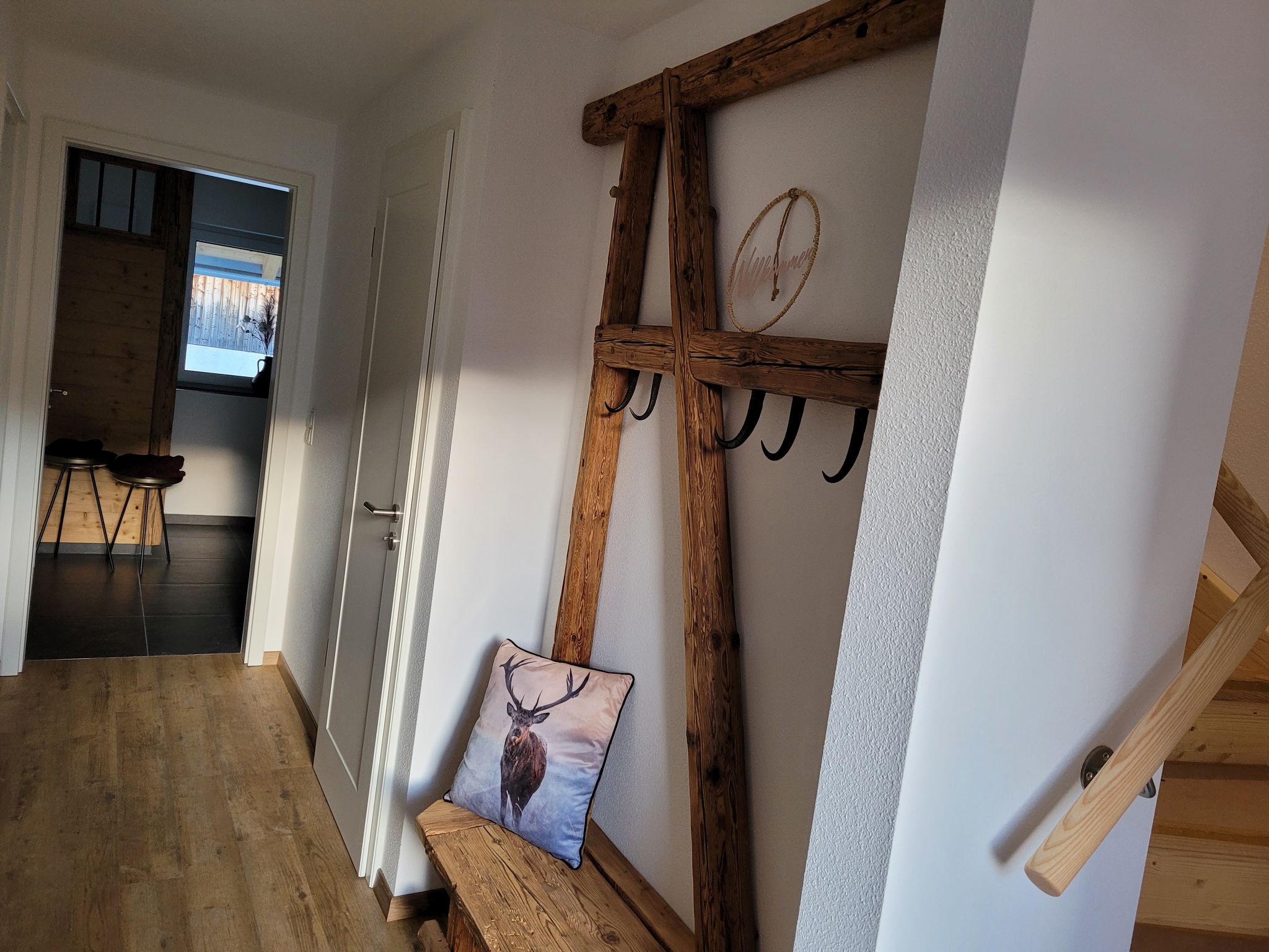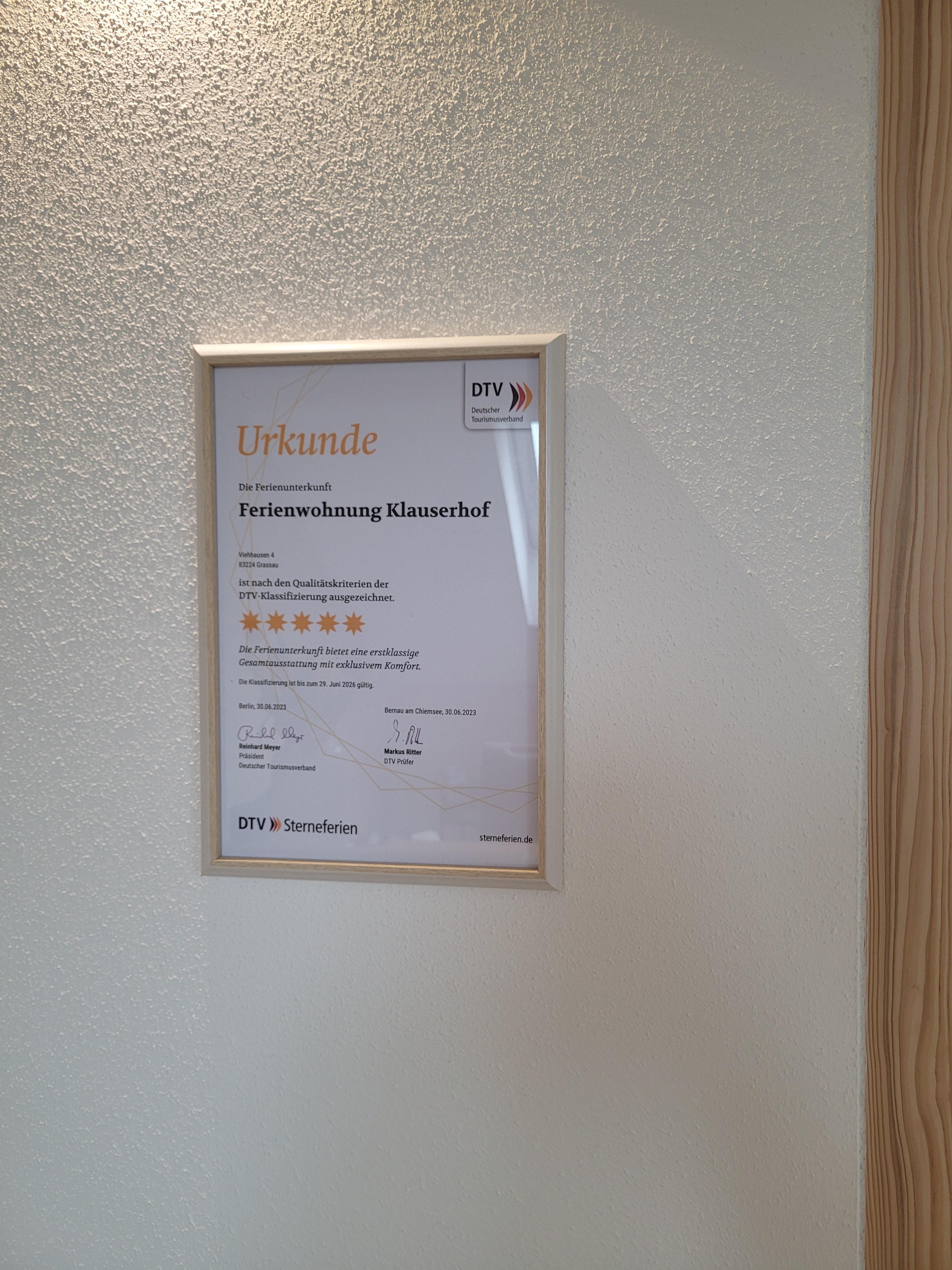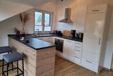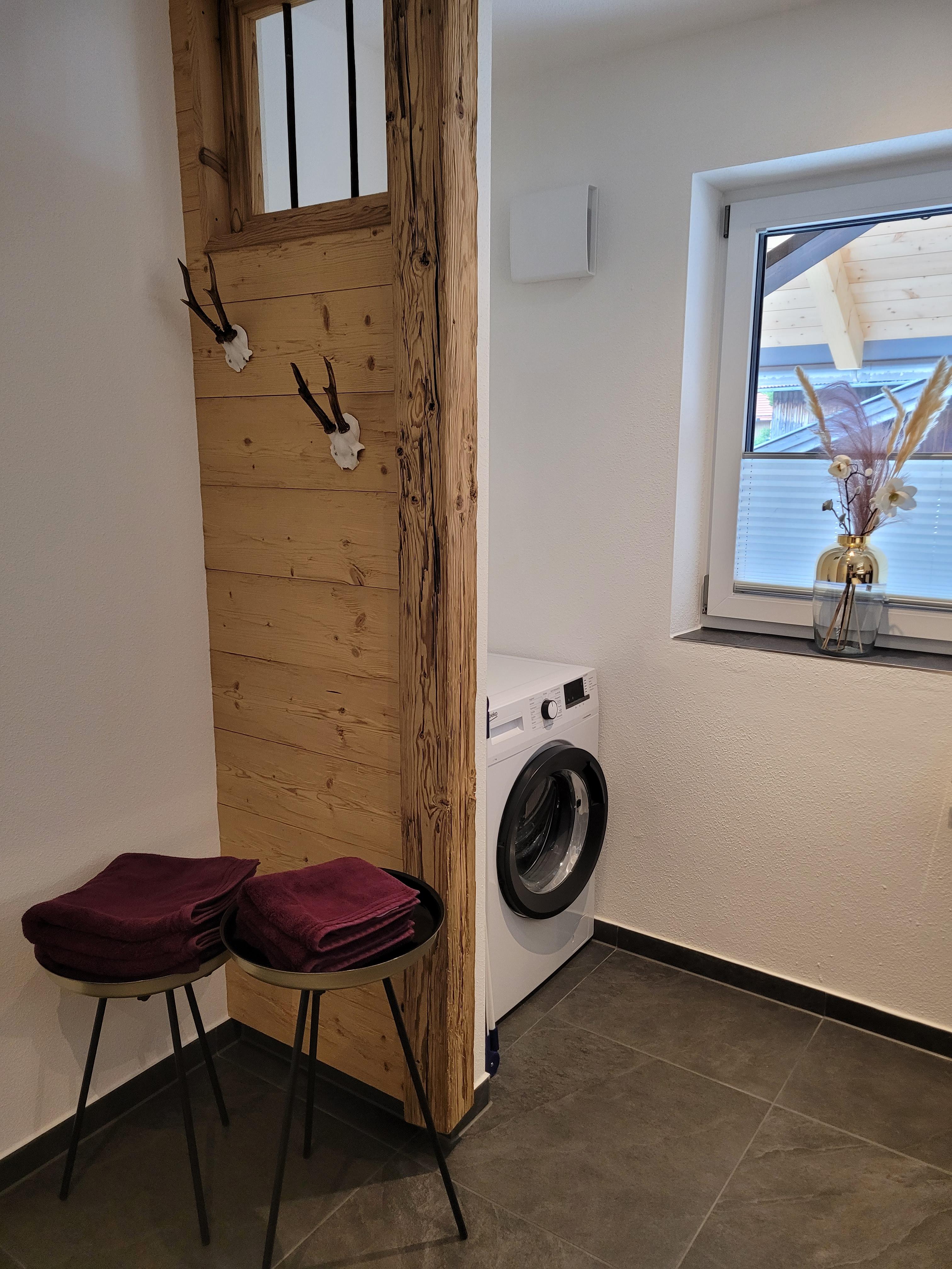 Unsere neu entstandene, 5 Sterne-Ferienwohnung ist sehr stilvoll und hochwertig eingerichtet. Die Mischung zwischen rustikalen Holzelementen und modernen Ambiente verleiht der Wohnung einen besonderen Flair. In der sehr lichtdurchfluteten Wohnküche im Dachgeschoss fühlt man sich sofort wie zu Hause. Dieser Bereich und auch der Rest der Wohnung ist gut geschützt vor sommerlicher Hitze durch Rollos und Raffstores. Im hinteren Teil des offenen Raumes kann man auf unserer großen Familiencouch den Tag gemütlich zum Ausklang bringen. Dort befindet sich auch der einladende Essbereich. Im vorderen Teil ist die großzügige Küche, von der aus man einen Kaffee mit Bergblick genießen kann. Von hier aus ist der Zugang zum überdachten Balkon möglich, der sich auf der Westseite befindet und von dem aus man einen wunderbaren Blick auf die Hochplatte bishin zum, in Tirol liegenden, Wilden Kaiser hat. Die zwei Schlafzimmer sind ausgestattet mit zwei Doppelbetten in der Größe 180x200 cm. Im Zirbenzimmer kann man den Duft der wohltuenden, ätherischen Öle der massiven Zirbenmöbel auf sich wirken lassen. Im Eichenzimmer findet man ein sehr hochwertig ausgestattetes Schlafzimmer mit Rustikalmassiveichenmöbel mit großem Kleiderschrank. Im geräumigen Bad befindet sich eine ebenerdige große Dusche. Die Wohnung ist mit einer kontrollierten Wohnraumlüftung ausgestattet und so auch für Allergiker gut geeignet. Die Eingangstür der Wohnung befindet sich im 1.Stock, zu der man durch eine separate Außentreppe kommt.