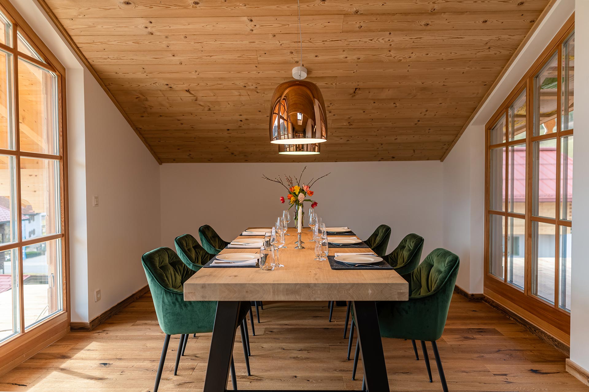 Die Appartement Steinplatte ist das Größte im Chalet Viol mit ca. 160m2 verteilt auf 2 Etagen. Die hochwertig eingerichtete Wohnung befindet sich im ersten Stock und Dachgeschoss und verfügt über eine schöne und hochwertig eingerichtete Essküche mit vollausgestatteter Küchenzeile und einladendem Küchenblock und einem großem Eichentisch, der Platz für 6-8 Personen bietet. Von der Küche aus hat man durch die Panoramafenster einen schönen Blick auf das Kaisergebirge. Im Dachgeschoss befindet sich außerdem eine große Sitzecke mit Glaskamin, TV, einer schönen Leseecke und einer einladenden Loggia mit Westausrichtung für z.B. schöne Abende im Freien. Die Wohnung Steinplatte verfügt über 3 gemütliche Schlafzimmer im Obergeschoss mit Boxspringbetten, Altholzvertäfelung und jeweils einem TV, sowie 2 schöne Bäder mit Badewanne und zusätzlicher begehbarer Regendusche. Das Highlight auf dieser Etage ist der Saunaraum mit einer Sauna für 4-5 Personen, 2 Liegen und direktem Zugang zum Balkon. Zum Appartment gehören 2 Stellplätze vor dem Haus.