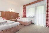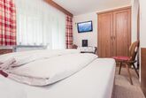 Doppelzimmer Murmeltier im Souterrain mit ca. 17 m²: 1 Doppelbett (Boxspringbett mit 1,8 x 2 m), Flat TV, Telefon, Safe, Badezimmer mit Dusche/WC und Haarfön. Mit Balkon. Getrennte Betten auf Anfrage möglich.