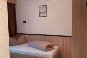 Einzelzimmer mit Dusche/WC und Kabel/TV. Größe ca. 12 m².