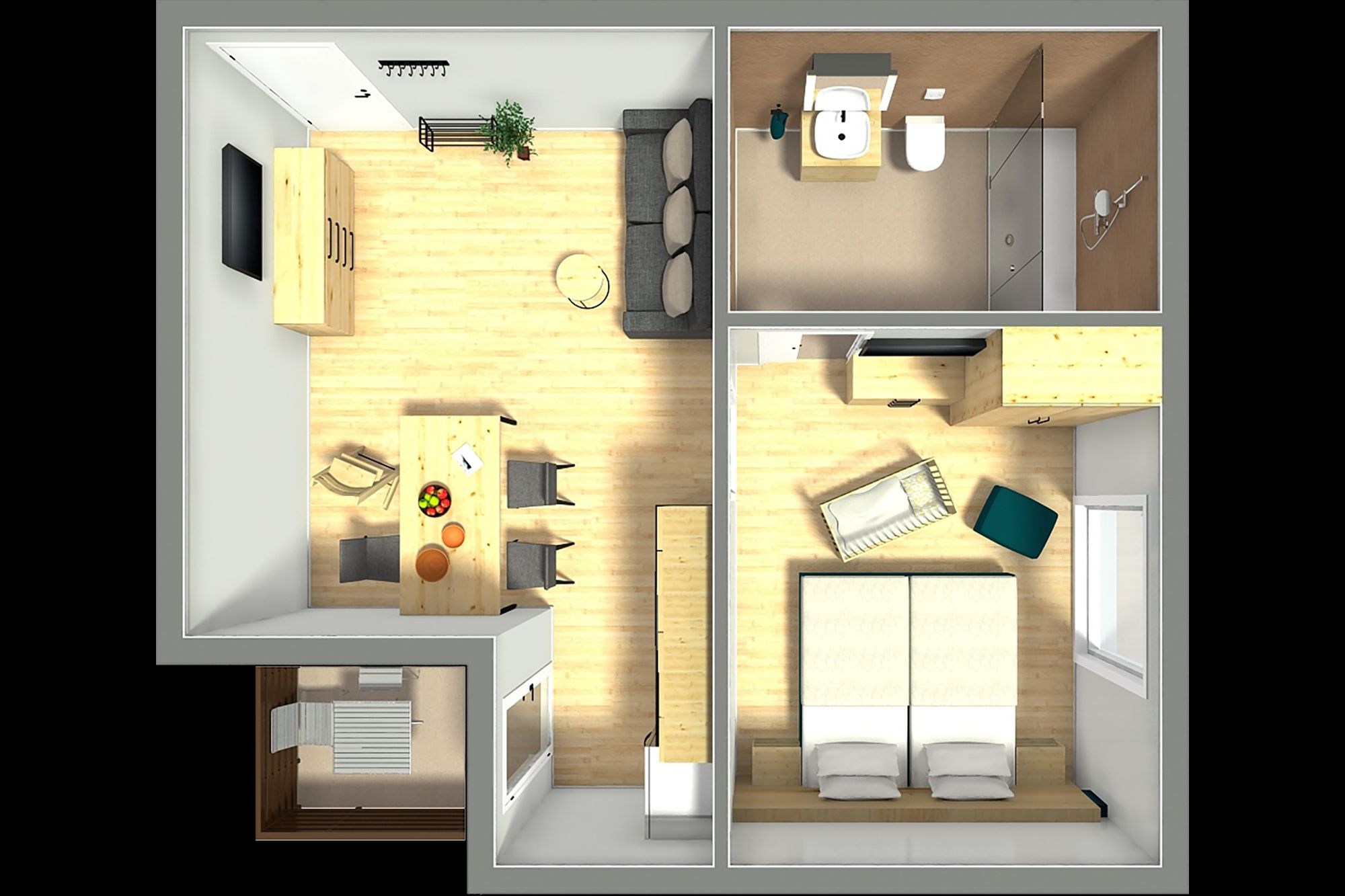 Garderobe, TV in Wohnküche und Schlafzimmer, kostenfreies W-Lan