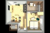 Garderobe, TV in Wohnküche und Schlafzimmer, kostenfreies W-Lan