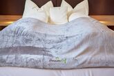 1 großzügiges Schlafzimmer mit Boxspringbetten sowie Flatscreen mit Sat-TV und Möglichkeit für ein Baby Bett