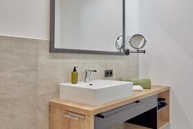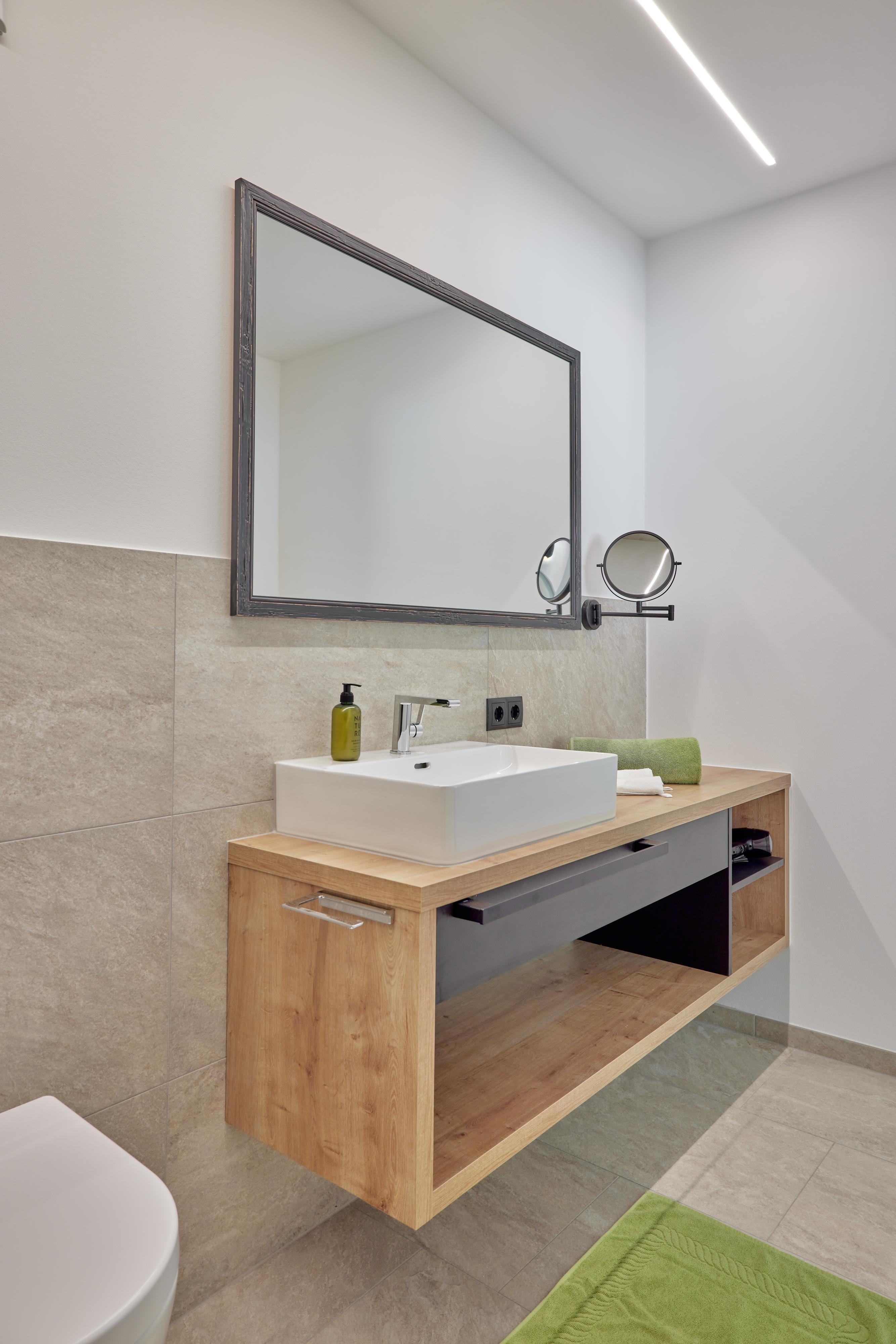 1 Badezimmer mit Dusche, Handtuchtrockner, Föhn, Kosmetikspiegel
