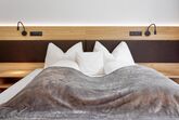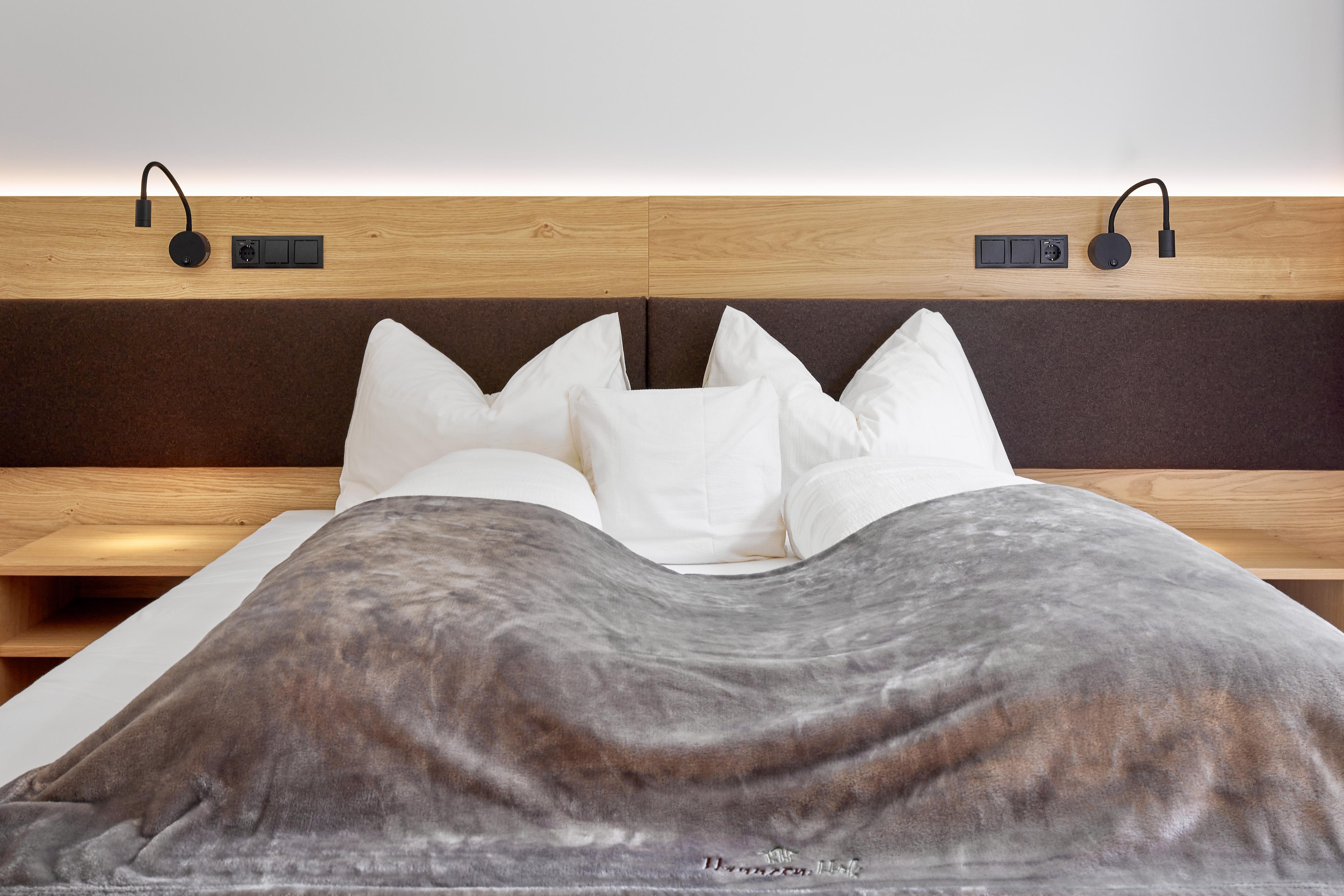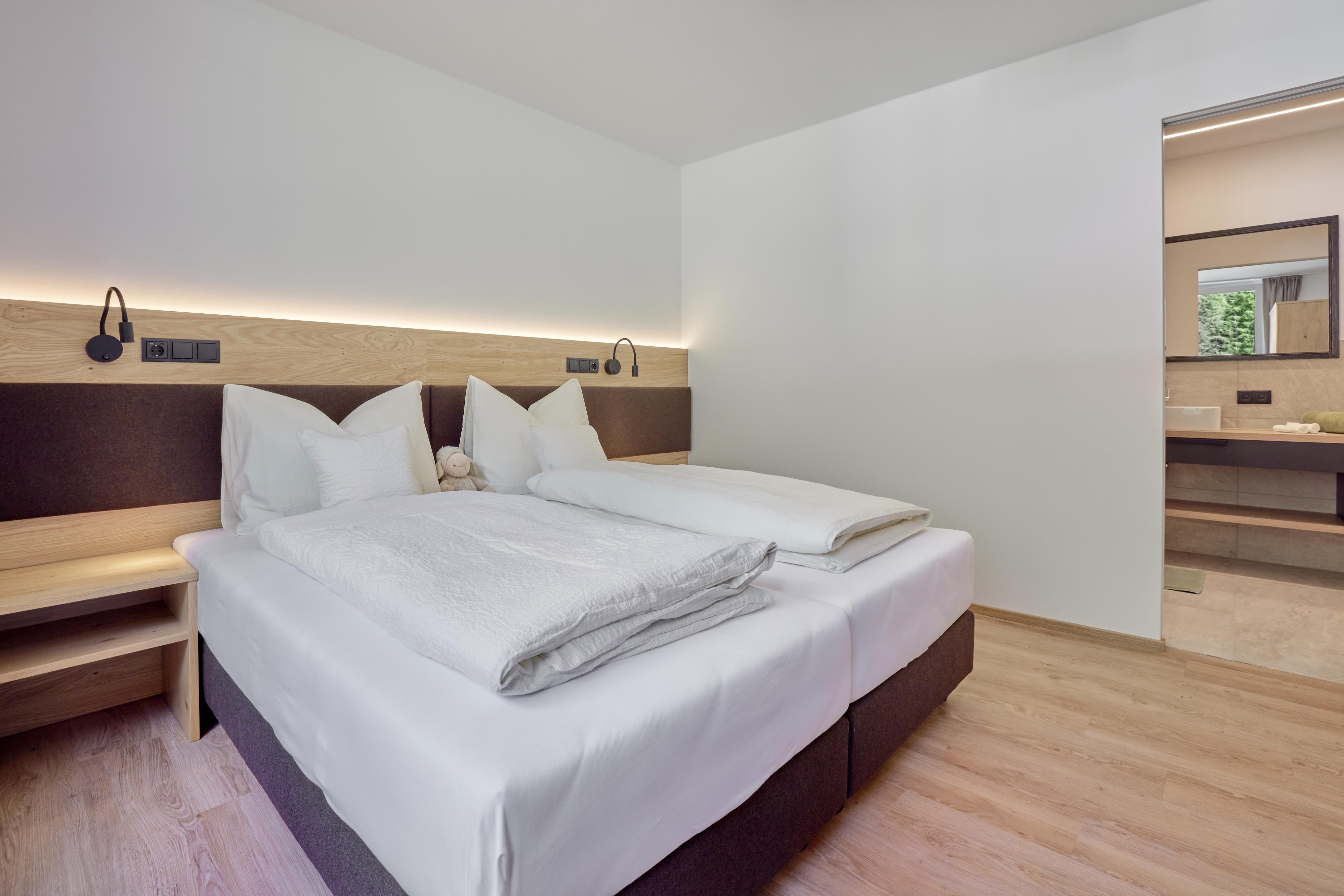 1 großzügiges Schlafzimmer mit Boxspringbetten sowie Flatscreen mit Sat-TV und Möglichkeit für ein Baby Bett