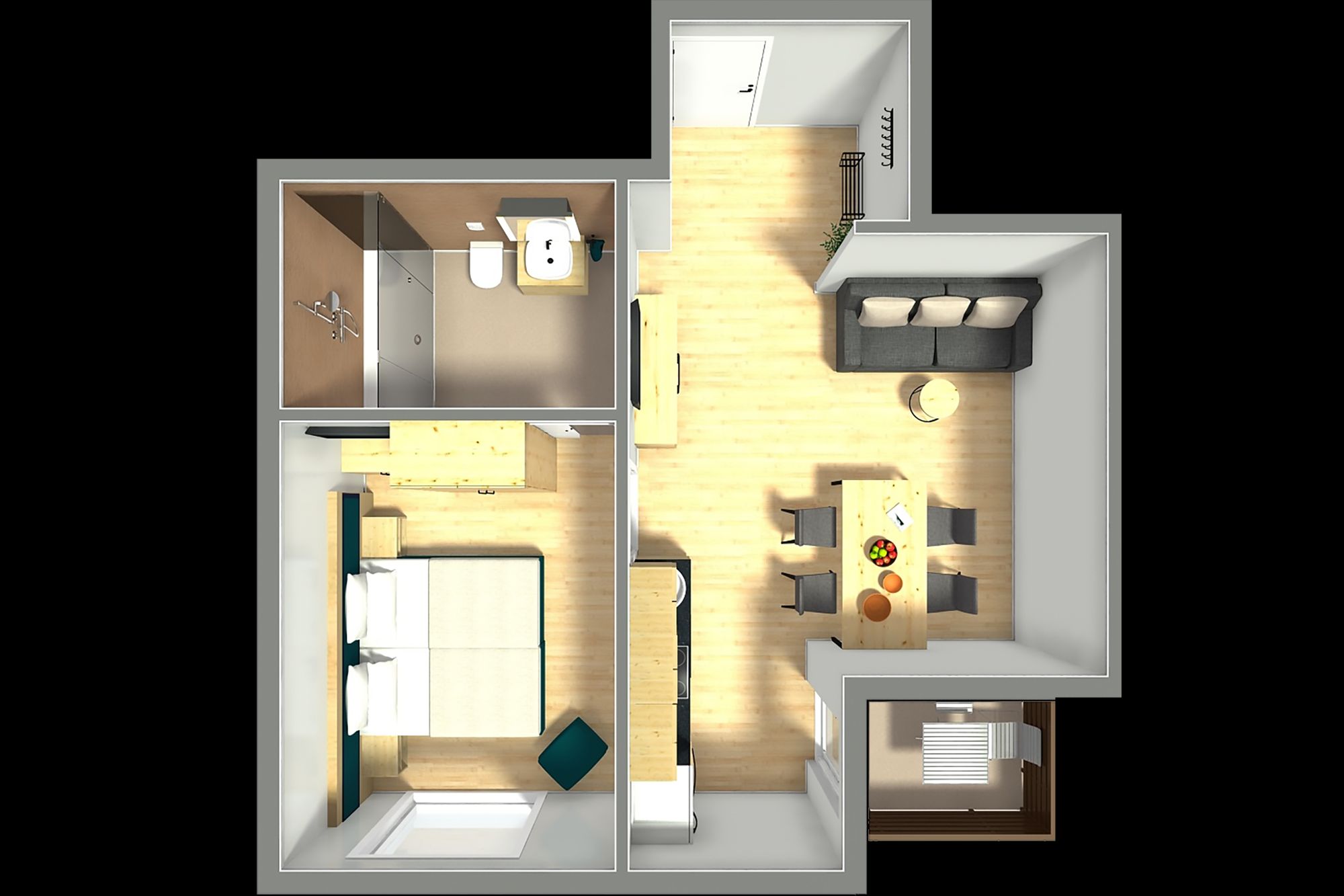 Garderobe, TV in Wohnküche und Schlafzimmer, kostenfreies W-Lan
