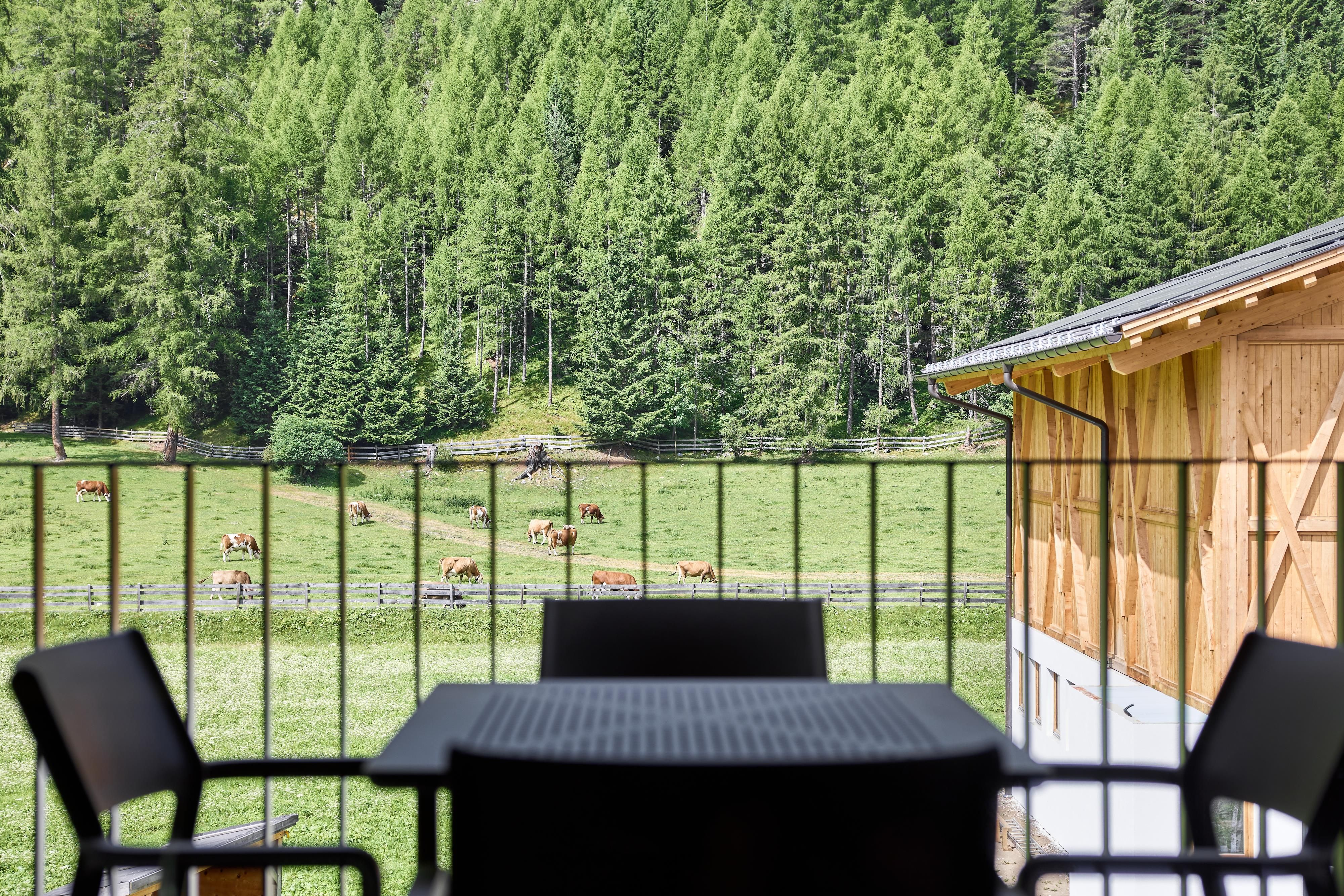 Balkon mit Sitzgelegenheit und je nach Lage Blick in die Berge/Landwirtschaft