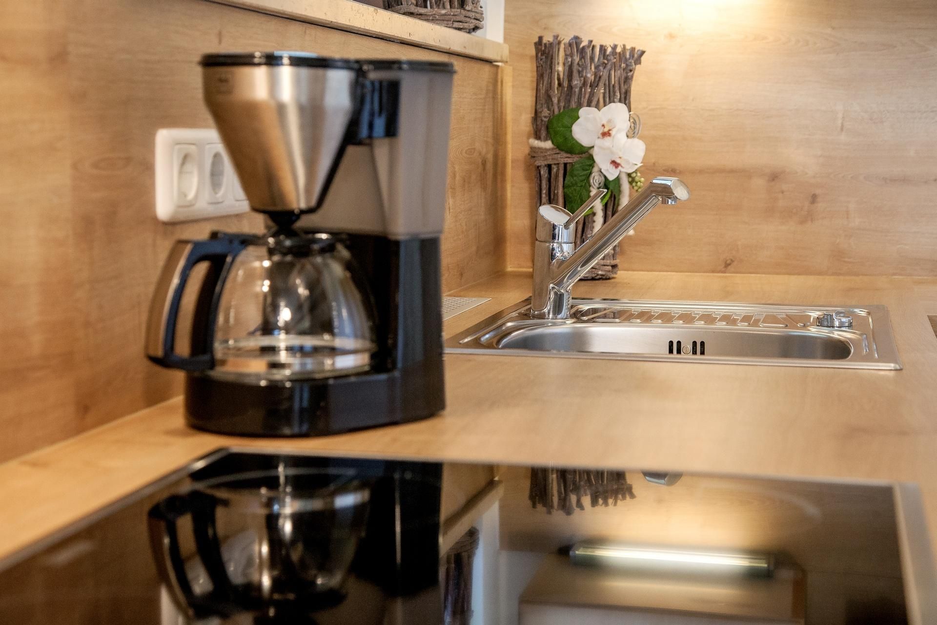 • Komplett ausgestattete Küche m. Ceranfeld, Backrohr, Kühlschrank m. kl. Gefrierfach, Geschirrspüler, Mikrowelle, Toaster