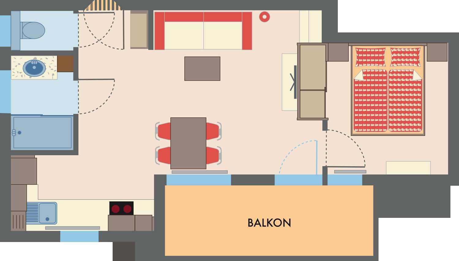 • je 1-2 Schlafzimmer, 1-2 Bäder mit Dusche & WC