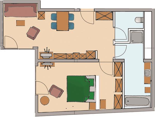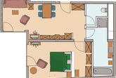 Neues 4-Sterne Appartement mit ca. 55 m². Doppelzimmer, Wohnschlafzimmer, komplett eingerichtete Küche (Kühlschrank, Gesch. Mikro. Toaster, Wasserkocher, Filter-Kaffeemaschine, Elektroherd), Bad, Haarföhn, Bettwäsche, Tischwäsche, WC und Balkon, Telefon, Kabel-TV, Radio, Safe.