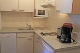 Die Küchenzeile ist mit Induktionkochfeld, Mikrowelle, Geschirrspüler, Filterkaffeemaschine, Wasserkocher, Brottoaster und Geschirr ausgestattet. Sat-TV, Radio mit CD und gratis Wifi sind vorhanden. Bettwäsche und Handtücher sowie Geschirrtücher sind vorhanden.