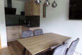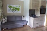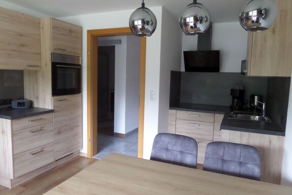 In der Wohnküche ist eine schöne neue Küchenzeile mit Induktionsherd, Backofen, Geschirrspüler, Filteraffeemaschine, Wasserkocher, Mikrowelle, Brottoaster und Gesschirrausstattung. Gratis Wifi, Sat-TV und Radio mit CD sind selbstverständlich vorhanden.