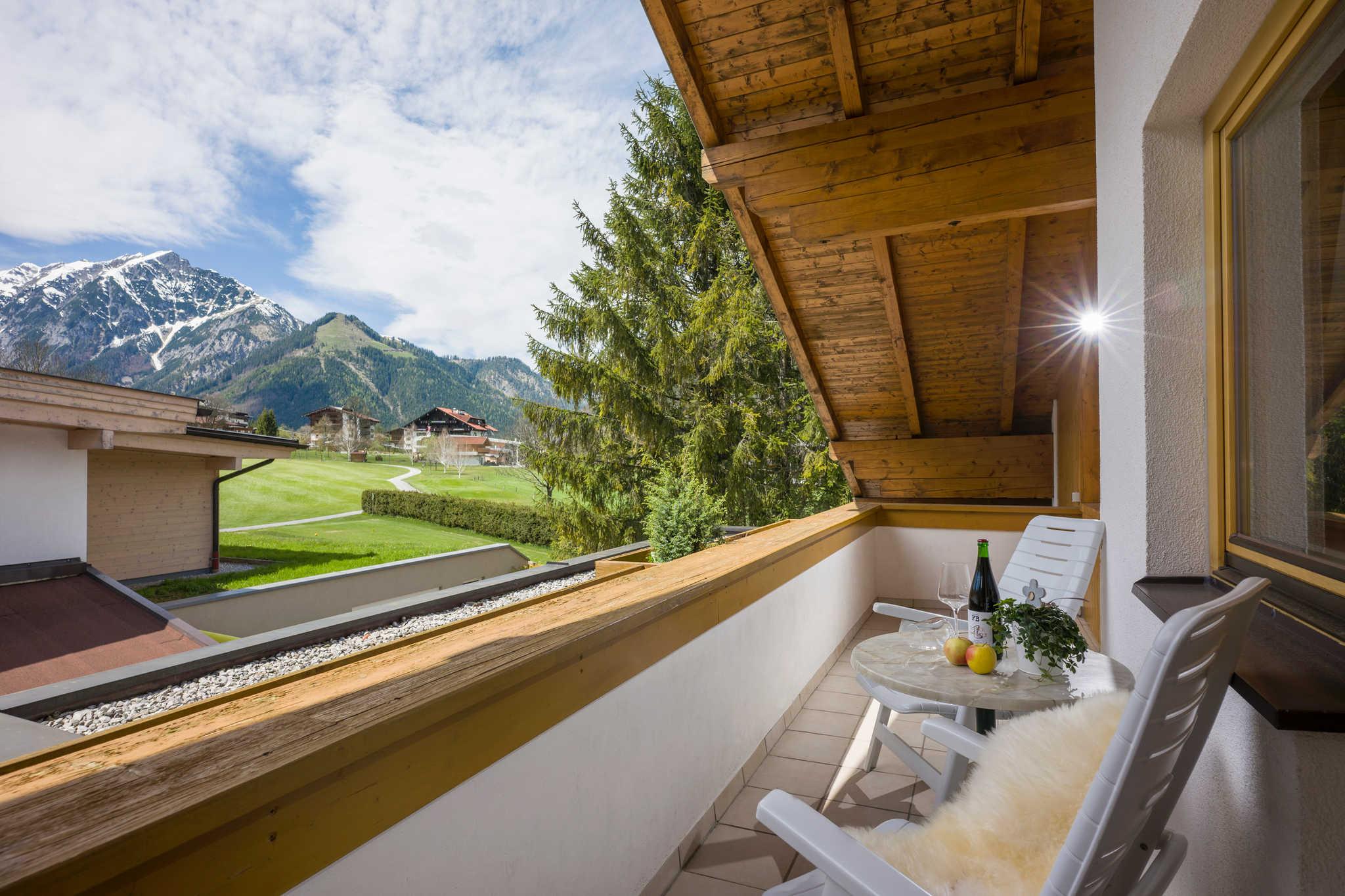 Urlaubstraum mit drei Schlafzimmern, zwei Badezimmern mit WC, Wohnbereich mit ausziehbarer Doppelcouch, Vorraum und Balkon. Von Ihrer Wohnung genießen Sie die Aussicht auf den Golfplatz und das imposante Karwendelgebirge.