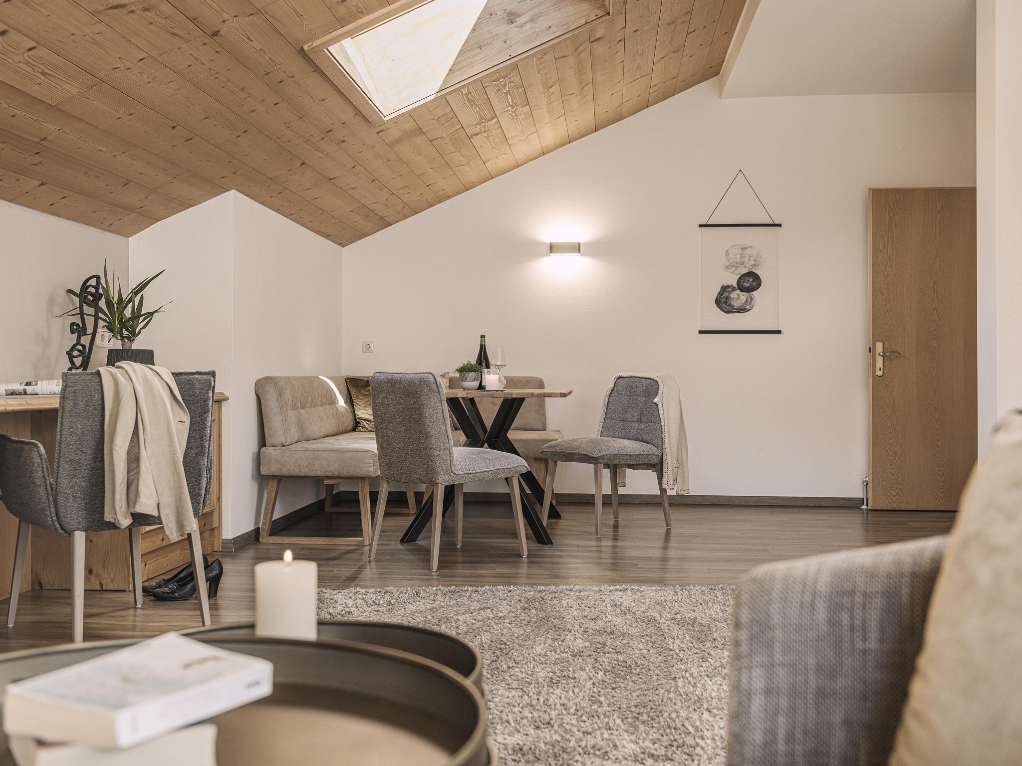 Alle Appartements bieten Wohnkomfort mit 4-Sterne-Anspruch und sind behaglich, stilvoll eingerichtet. Die Wohnungen sind ausgestattet mit einem großen Wohnraum mit Essecke, einer komplett ausgestatteten Küchenzeile (E-Herd, Mikrowelle, Kühlschrank, Geschirrspüler, Teekocher, Kaffeemaschine, Toaster, Geschirr etc.), einem Badezimmer mit Dusche, teils separates WC, Flat-TV, SAT, Telefon, CD-Player, Radio, Safe sowie einem Balkon oder Terrase teils mit Panoramablick.