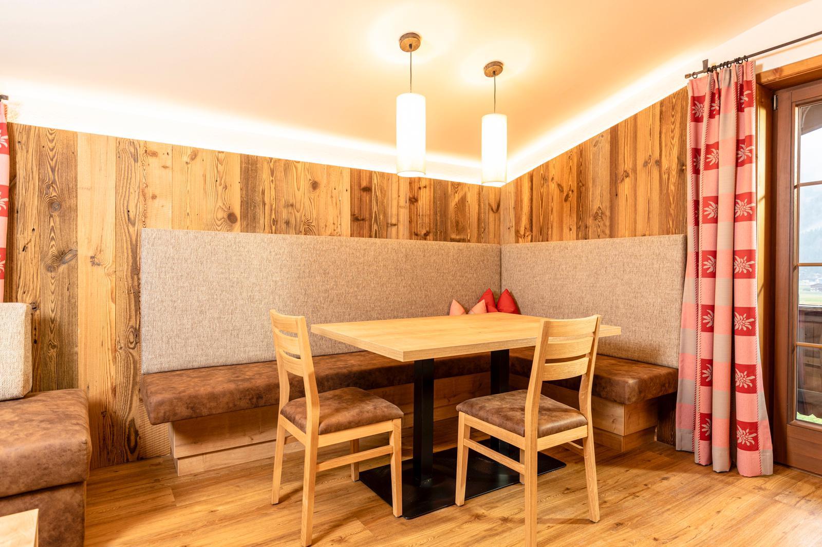 Großzügiges sehr gemütliches Appartement im edlen Tiroler Holzdesign. Zwei komfortable Doppelzimmer mit zwei getrennten Badezimmern, Dusche und WC, Fön, Handtüchern und Naturpflegeprodukte. Geräumige Küche mit großem Wohnbereich, Essecke und gemütlicher Couch, Balkon mit Vor- und Mittagssonne und Blick auf die wunderschöne Bergwelt, Flat-TV, Freie W-Lan Benützung. Das Appartement Edelweiß wurde mit hochwertigen Naturmaterialien ausgestattet und besticht durch sein vertrautes und warmes Flair. Durch die großzügige Raumaufteilung bietet das Appartement Edelweiß einen Rückzugsort für Familien, Freunde und Paare – perfekt für ein besinnliches und gemütliches Beisammensein am Achensee.