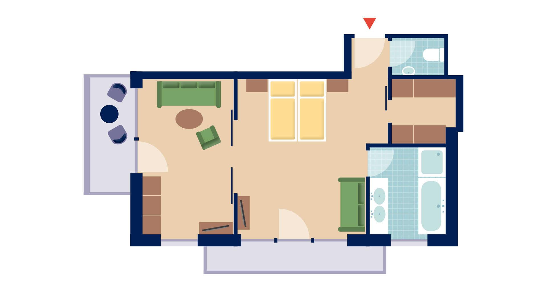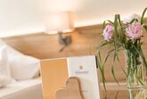 Die Loft Suite bietet einen zweiseitigen Balkon mit traumhaftem Ausblick und Liegestühlen. Wohn- und Schlafraum können durch eine Schiebetür getrennt werden.