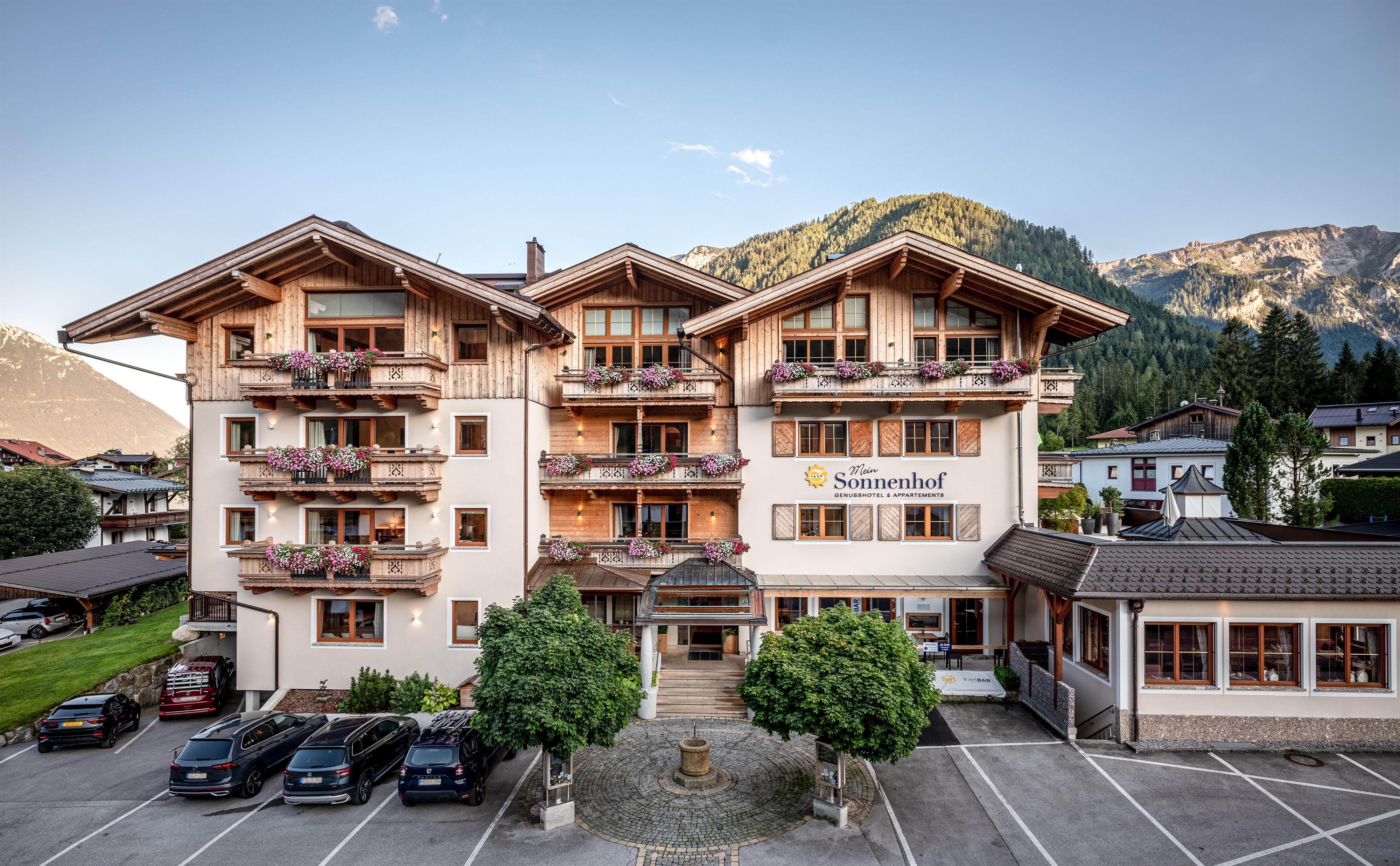 Im privat geführten Genusshotel Sonnenhof erwarten Sie 27 Zimmer, Suiten und 10 Ferienwohnungen - alpiner Charme, gemütlich & naturverbunden. Alle Zimmer bieten einen imposanten Ausblick auf die umliegende Tiroler Bergwelt. Kostenfreie Parkplätze & gratis W-LAN im gesamten Hotel.