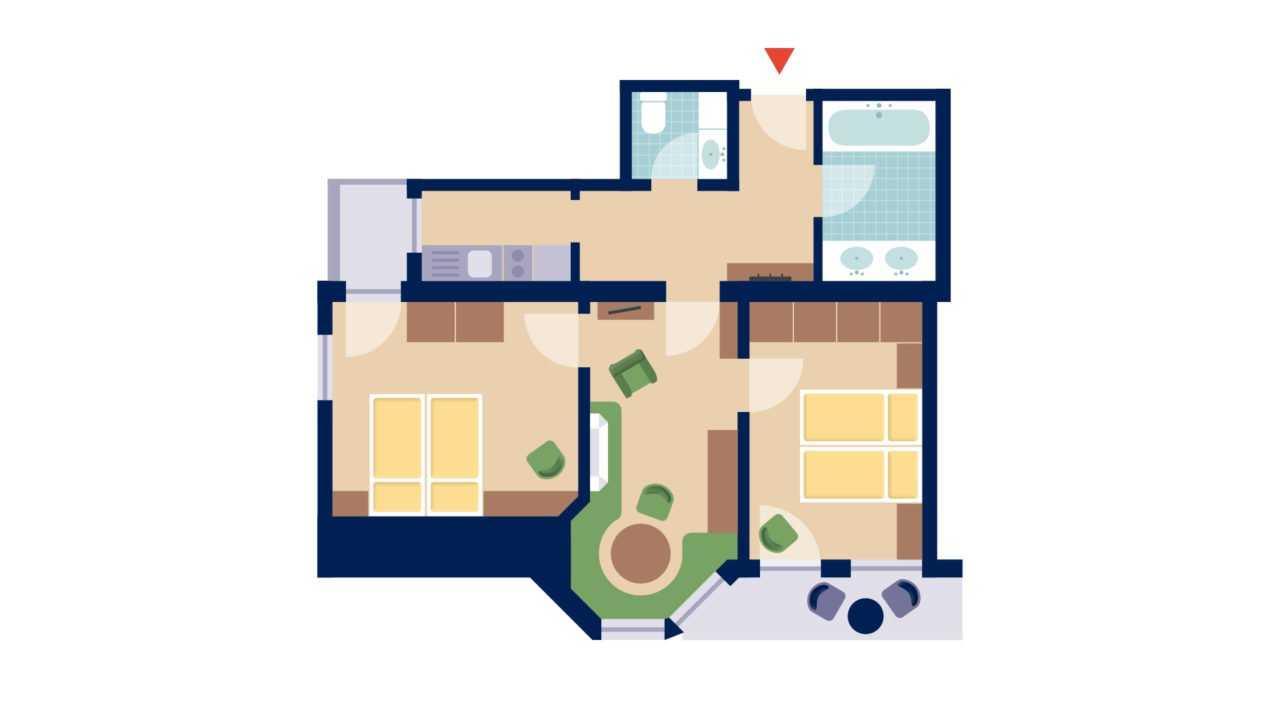 Abweichungen der Grundrisse bei Möblierung und Raumaufteilung sind möglich. Was die Aufbettung angeht, sind 2 x Doppelbett- bzw. Variante mit 1 x Doppelbett- und 1 x Twinschlafzimmer möglich. Alle Annehmlichkeiten des Hotels können mit benützt werden.