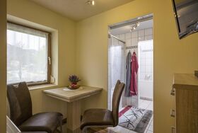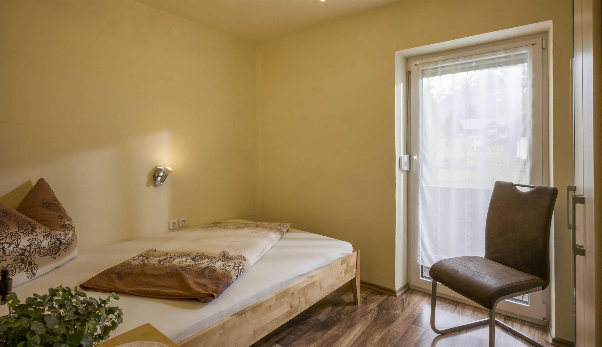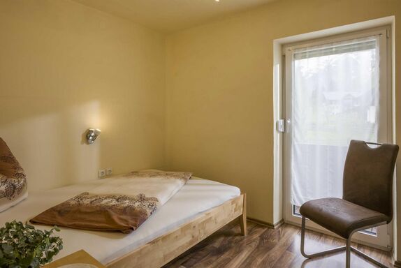 Einbettzimmer, 1 Schlafzimmer mit 3/4-Bett im 1. Stock, Bad/WC inklusive Föhn, Balkon Richtung Westen, Safe, TV-Flachbild, SAT-TV, Radio, kostenloses W-LAN, kostenloser Parkplatz vorhanden, Frühstück inklusive, kleine separate Gästeküche im Erdgeschoss verfügbar mit Kühlschrank, Herdplatten und Wasserkocher. Aufenthaltsraum/Frühstücksraum gegenüber der Küche benutzbar.
