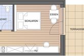 28 qm inkl. möblierter Terrasse mit Bergblick und Nachmittagssonne