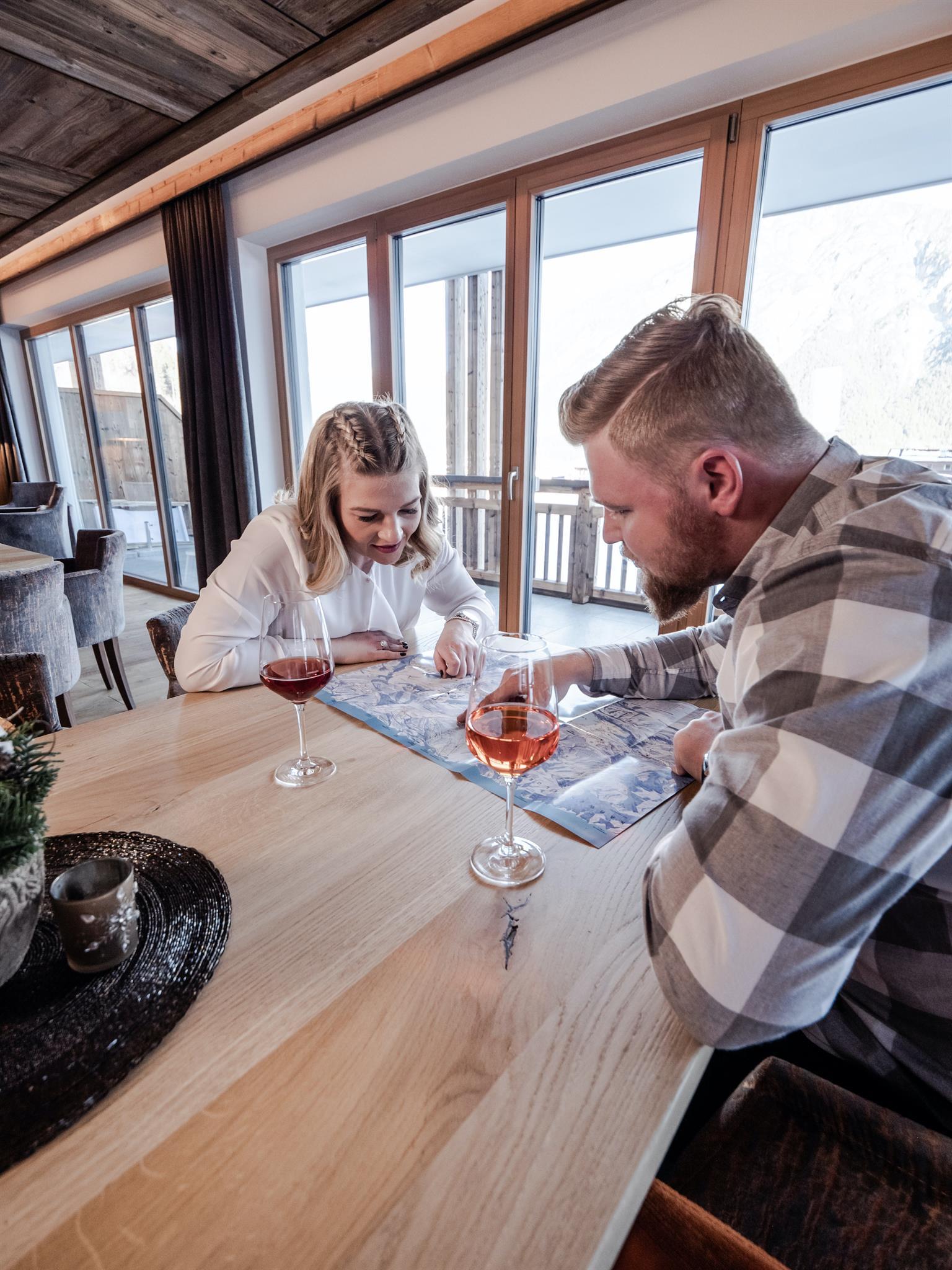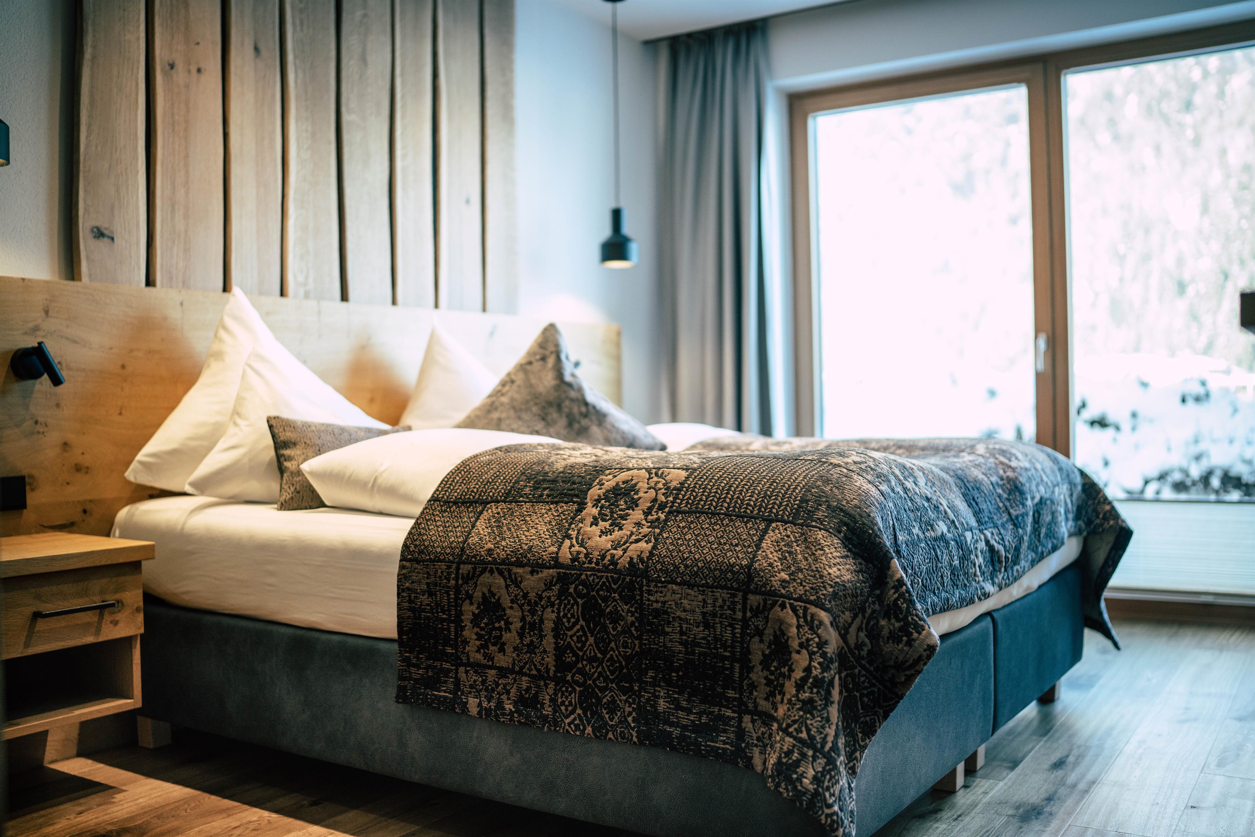eine Einrichtung in edlem Holzdesign und hochwertigen Naturmaterialien für viel Gemütlichkeit, ein heimeliger Rückzugsort in mitten der beeindruckenden Bergwelt bereichern diese Wohlfühl-Atmosphäre