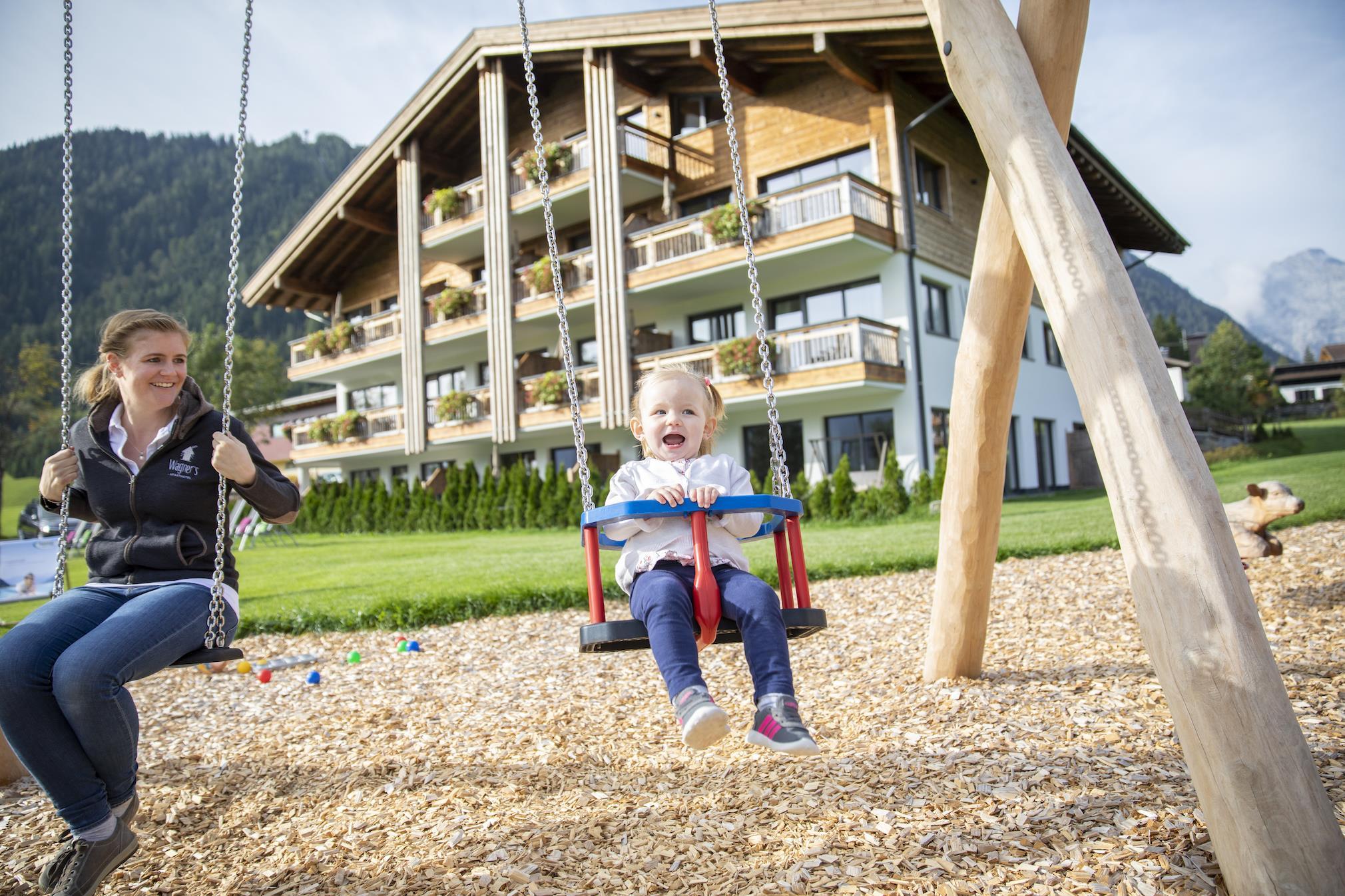 Die Möglichkeiten sind grenzenlos: Schwimmen, Wandern, Laufen und Spazieren im Sommer und bestens präparierte Loipen- und Skipisten im Winter. In unserem Stammhaus Hotel Wagnerhof**** (150m entfernt), kann man ein wunderbares Abendessen genießen oder im GARTEN SPA den aufregenden Tag Revue passieren lassen. Unsere Kinderspielecke und unser Abenteuer Spielplatz direkt beim Haus warten auf viele WIR Momente.