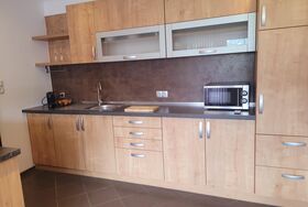 Auch eine Kaffemaschiene, Backofen und eine Mikrowelle stehen für euch bereit.