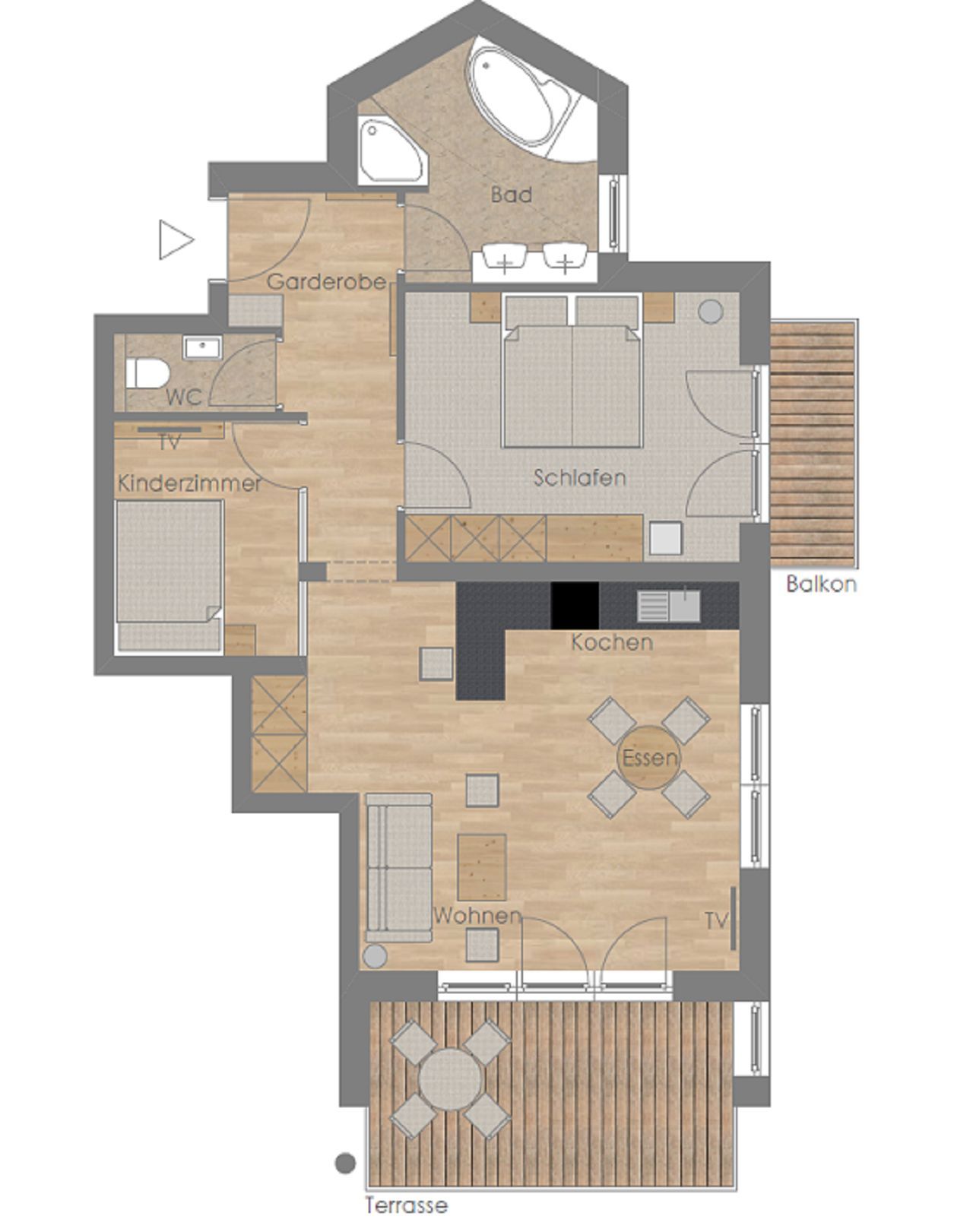 Das Appartement Zwölferkopf bietet 2 Schlafzimmer, einen großzügigen Wohnbereich mit Doppelcouch, Küchenzeile, Badewanne, Dusche, WC getrennt, Föhn, Kosmetikspiegel, Flat-TV, Radio, Telefon, Safe, WLAN und großzügige Südterrasse, Haustiere nur auf Anfrage