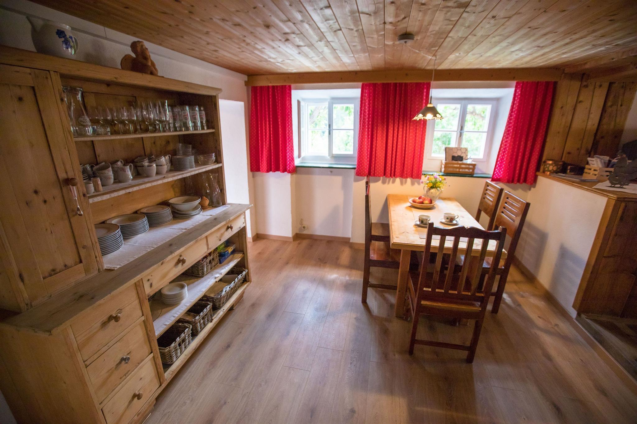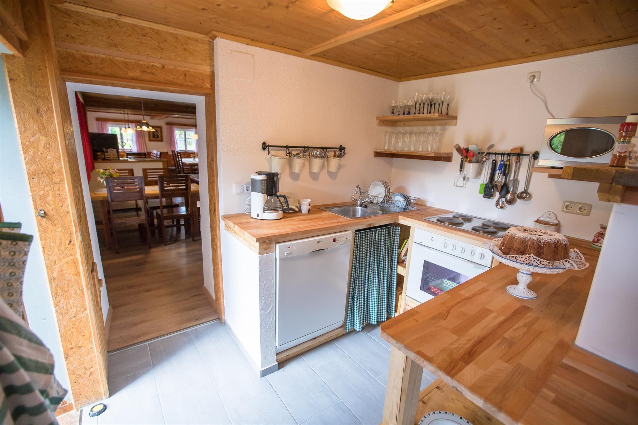 Die Wohnküche samt Kochmöglichkeit befindet sich im Erdgeschoss des Hauses. Sie verfügt über Elektroherd, Mikrowelle, Backofen, Warmwasserspüle, Kühl- und Gefrierschrank, Geschirrspüler, Koch- und Speisegeschirr, Filter-Kaffeemaschine, Wasserkocher, Toaster, und einen Tisch für fünf Personen.