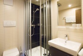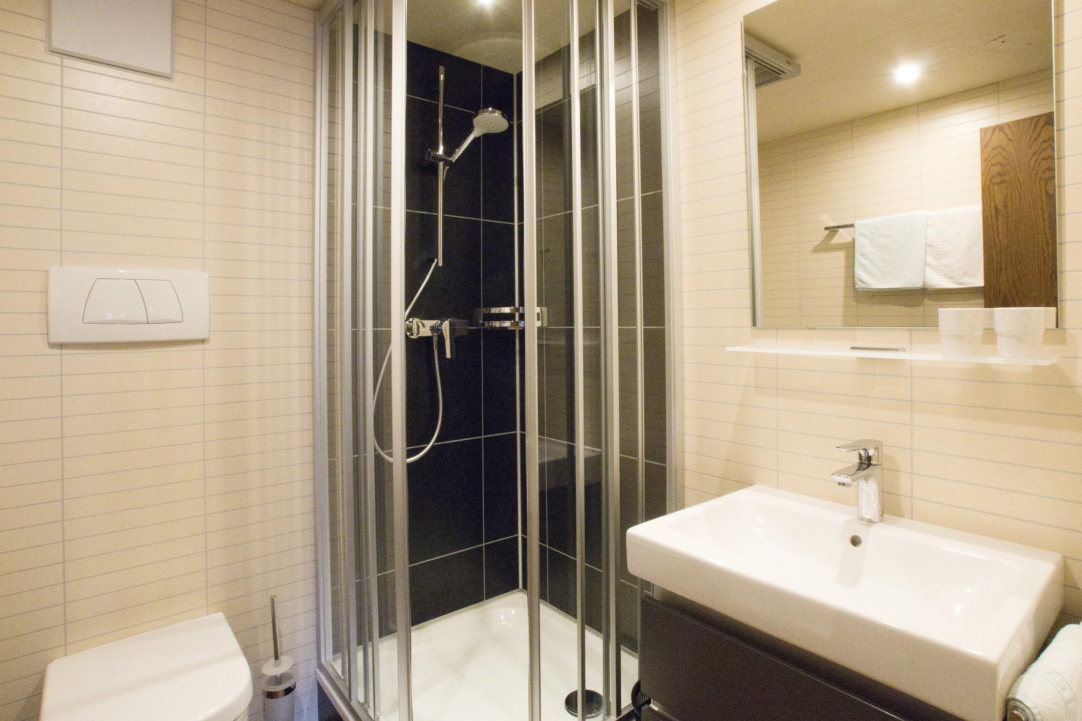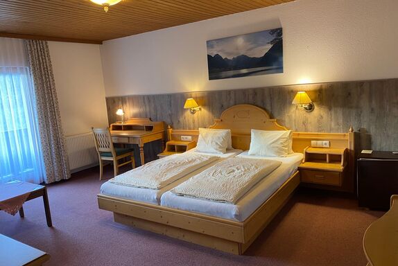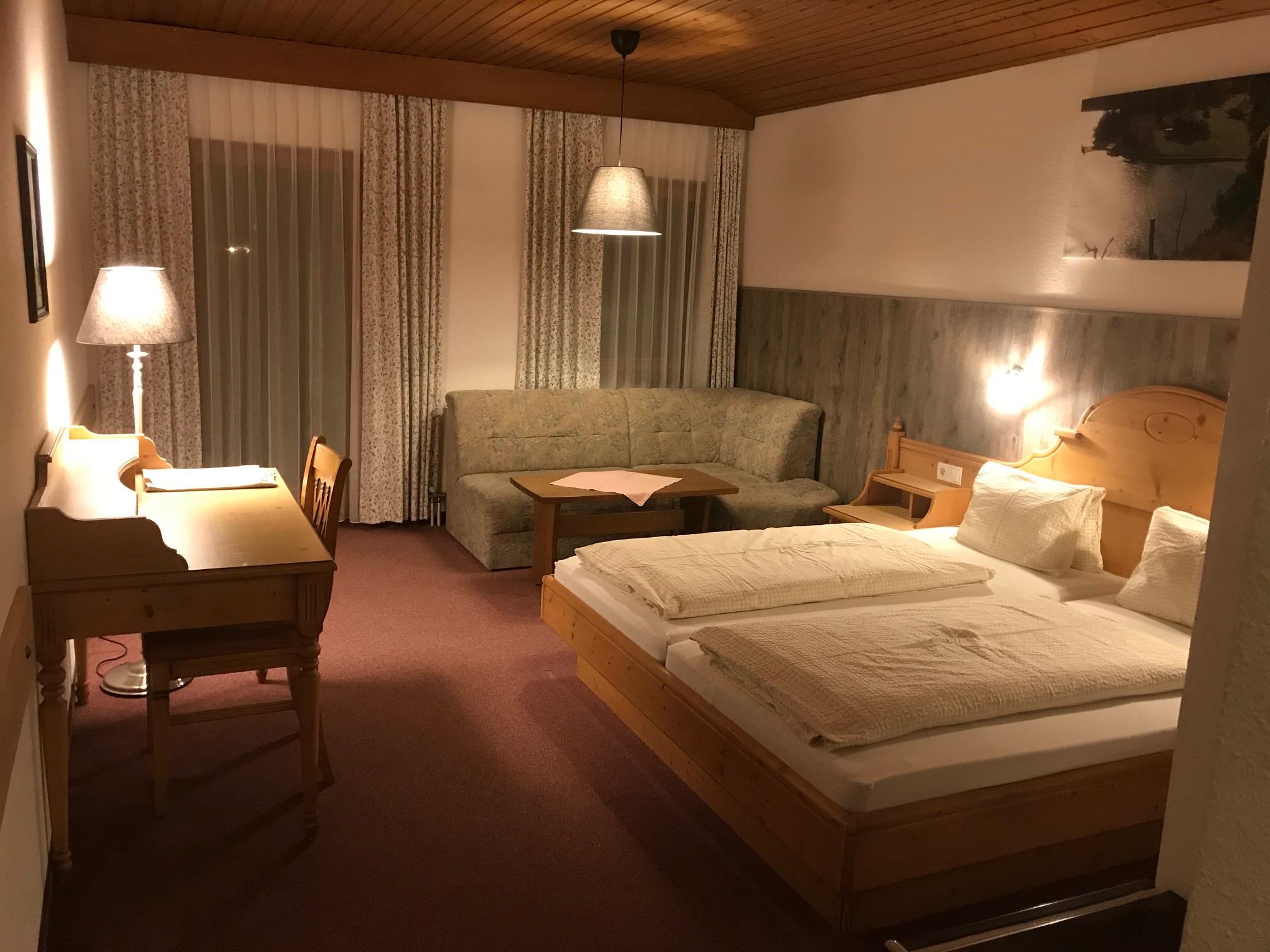 Geräumiges Doppelzimmer mit Dusche, WC, gemütlicher Sitzgruppe und Balkon.