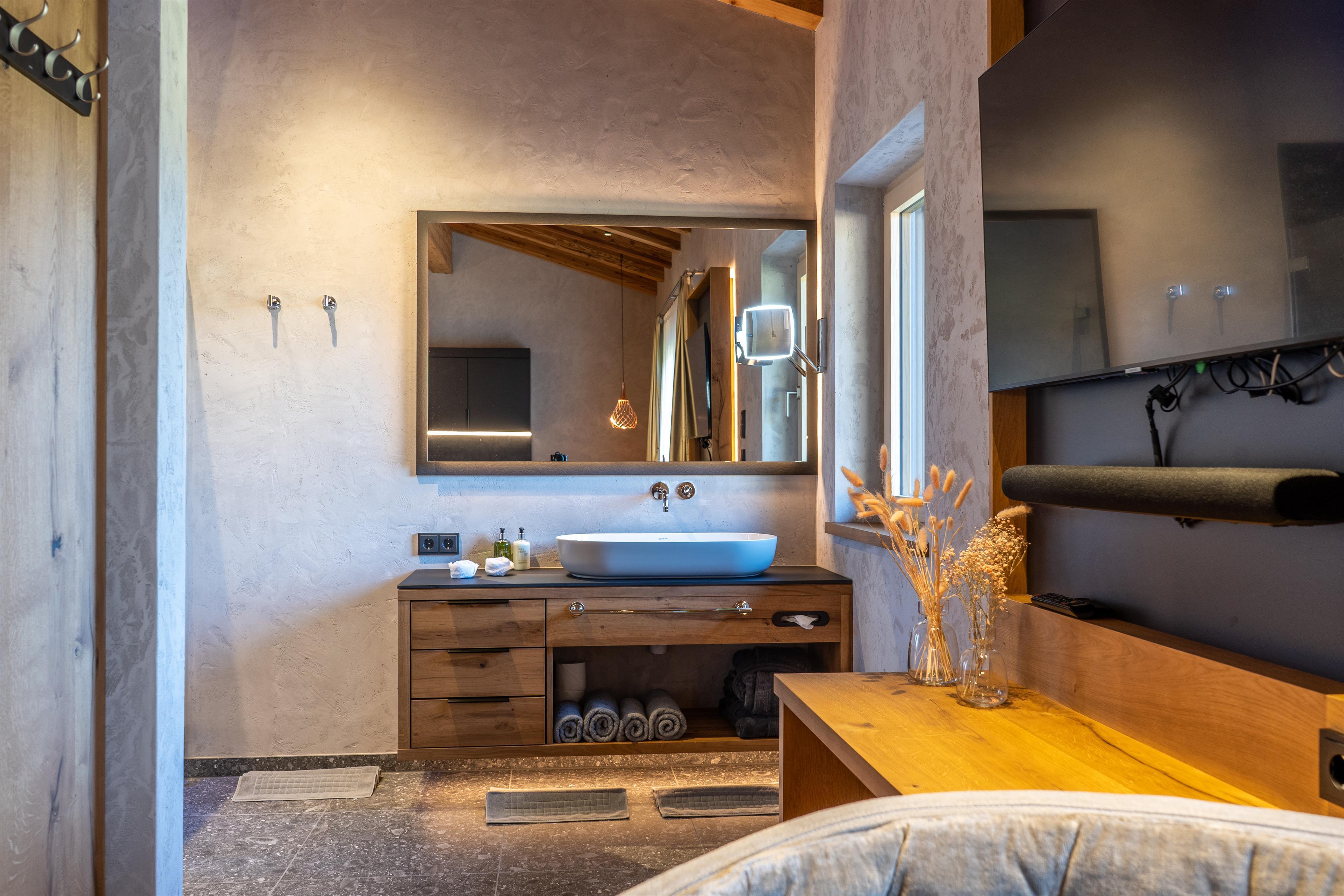 Unser urgemütliches, exklusives Studio (30m2) mit Boxspringbett und überkompletter Mini-Küche versprüht einfach Harmonie. Abgerundet wird dies mit einem Badezimmer mit begehbarer Dusche, getrenntem Senso Wasch-WC und einem traumhaften Ausblick zur Kirche.