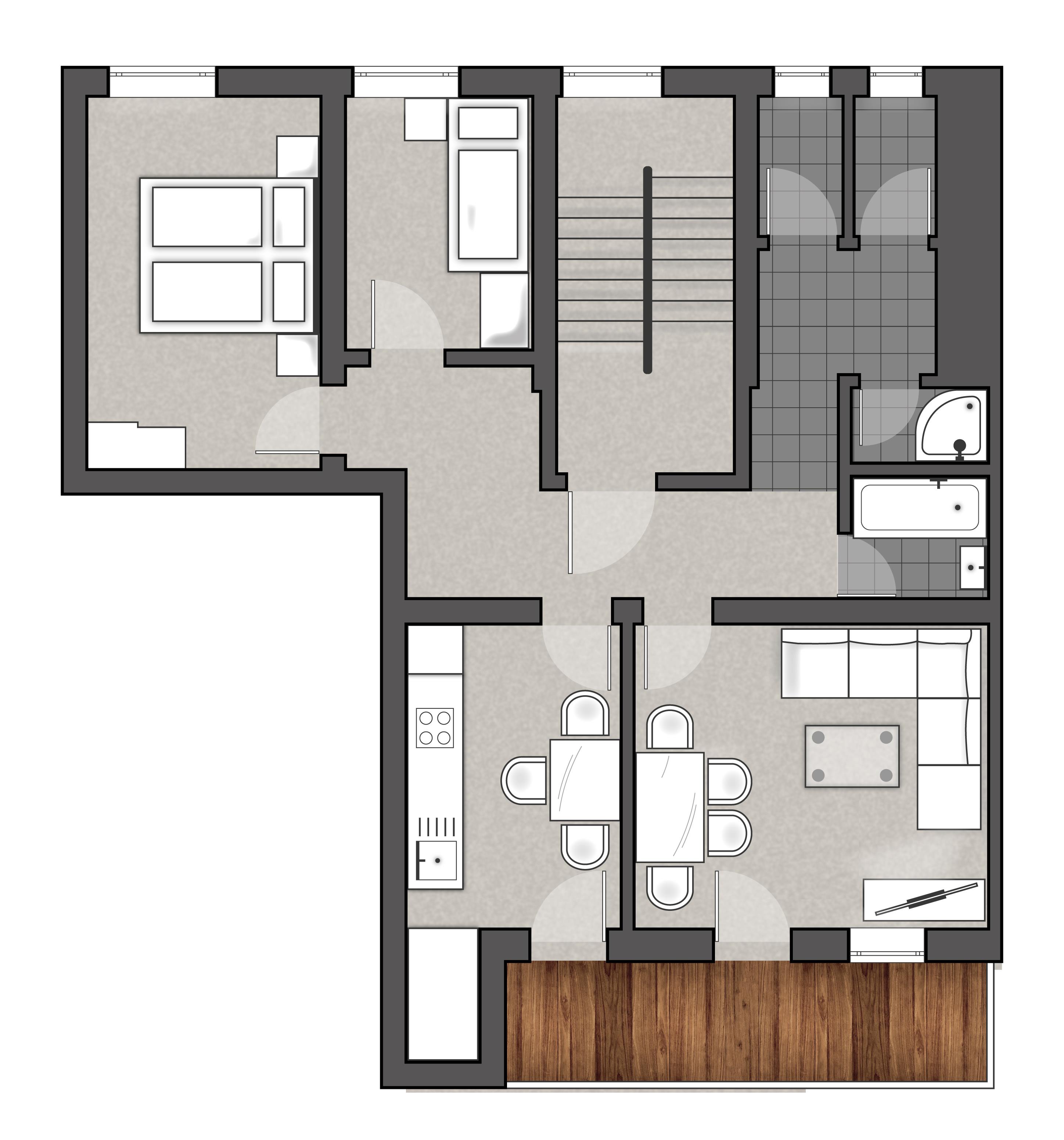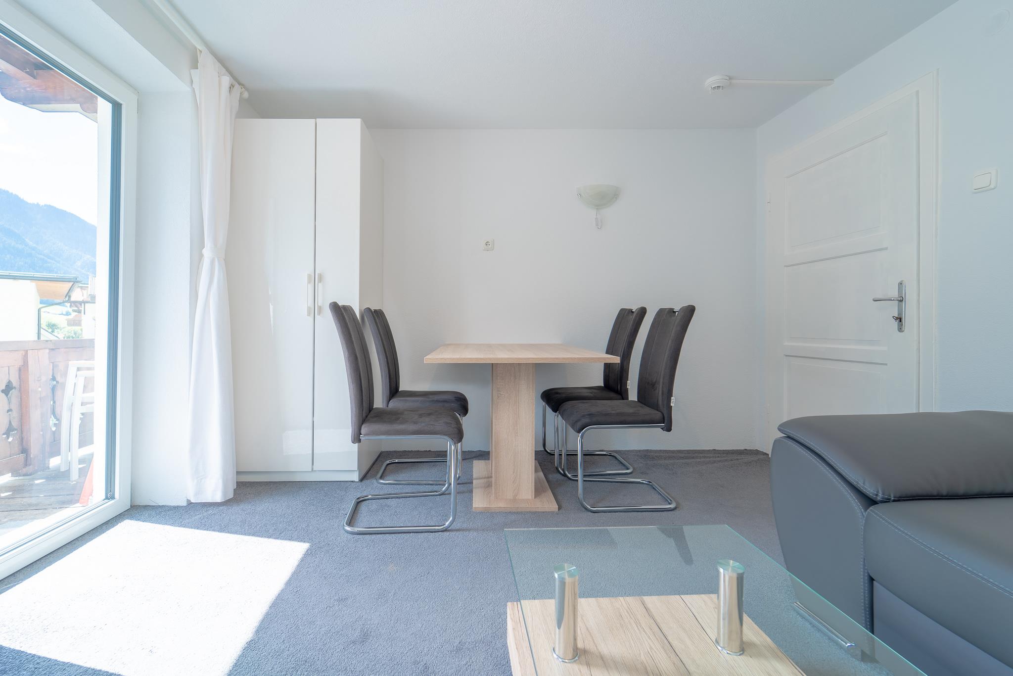Appartement „Classy“ (ca. 60 m²) bestehend aus 2 Doppelzimmern, 1 Badezimmer mit Dusche, 1 Badezimmer mit Badewanne, 2 WC separat, 1 Wohnzimmer, 1 vollausgestatteten Küche (Cerankochfeld, Geschirrspülmaschine inkl. Spülmaschinentabs, Kühlschrank mit Gefrierschrank, Teekocher, Filter Kaffeekocher uvm.) und Smart Flat Full HD TV (Netflix oder Prime mit eigenem Abo). Genießen Sie auf dem möblierten Balkon das Bergpanorama der Ötztaler Alpen.