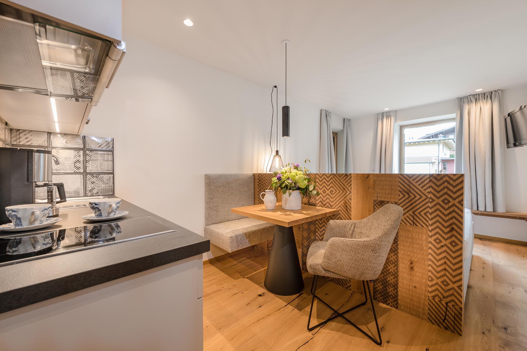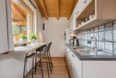 • gemütliche Wohnküche mit Wohn- und Essecke, komplett ausgestattete Küche mit 4-Platten-Cerankochfeld, Mikrowelle, Backofen, Kühlschrank mit Gefrierfach, Filterkaffeemaschine (auf Wunsch Nespresso verfügbar), Toaster, Wasserkocher, Geschirr, Besteck und Kochutensilien