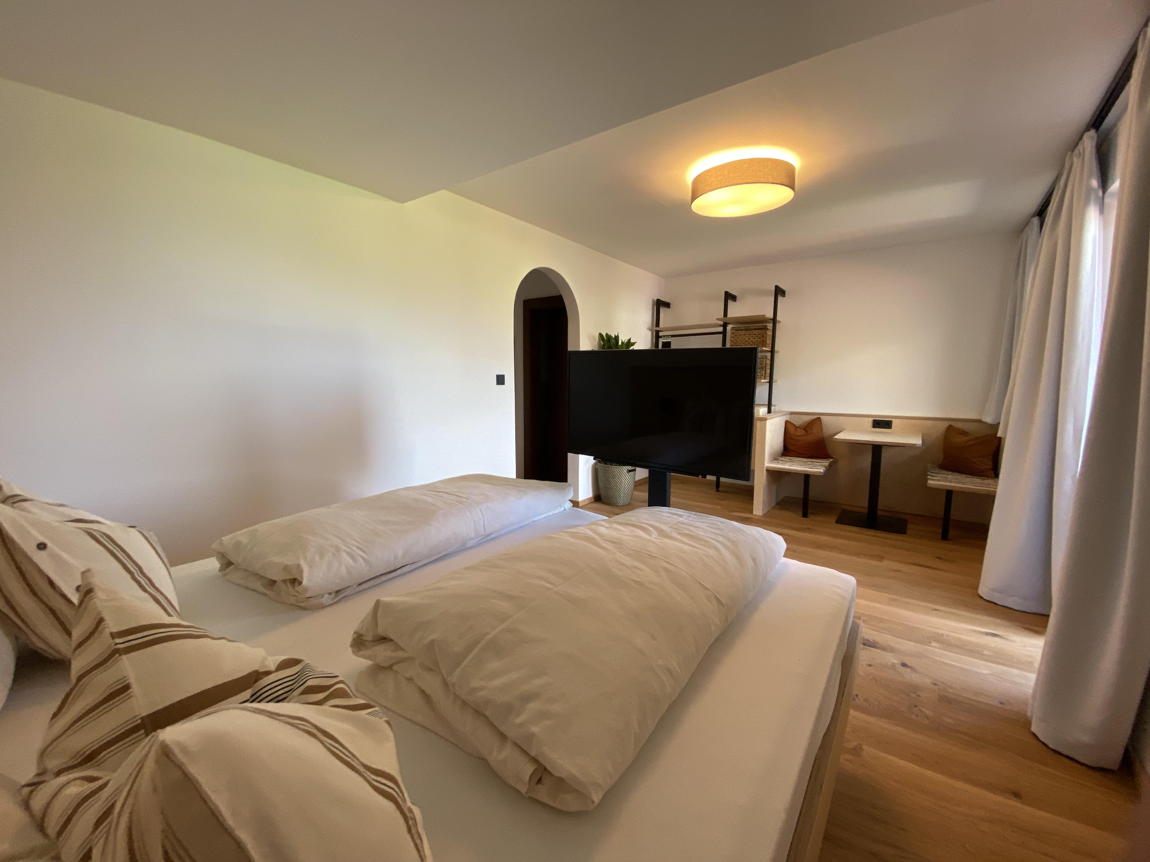 Generalsanierte Doppelbettzimmer, angenehmer Wohnkomfort ohne unnötigem Schnickschnack, auf das Wesentliche reduziert, aber keineswegs spartanisch. Getreu dem Motto: Perfektion wird nicht erreicht sobald man nichts mehr hinzufügen kann, sondern sobald man nichts mehr weglassen kann.