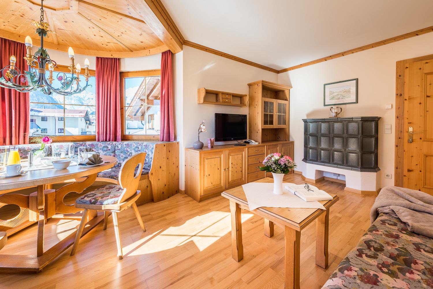 Unsere Appartements mit ein bis zwei Schlafzimmern sind alle mit dem Personenlift erreichbar und mit Parkettboden, Sat-TV, WLAN, Festnetztelefon und Safe ausgestattet. Die Wohnungen sind mit einer voll ausgestatteten Küche mit Mikrowelle, Filterkaffeemaschine, Wasserkocher, E-Herd mit Backrohr und Geschirrspüler sowie kompletter Geschirr- und Wäscheausstattung eingerichtet. Ein Rad- und Skiraum mit Schuhtrockner und Parkplatz sind